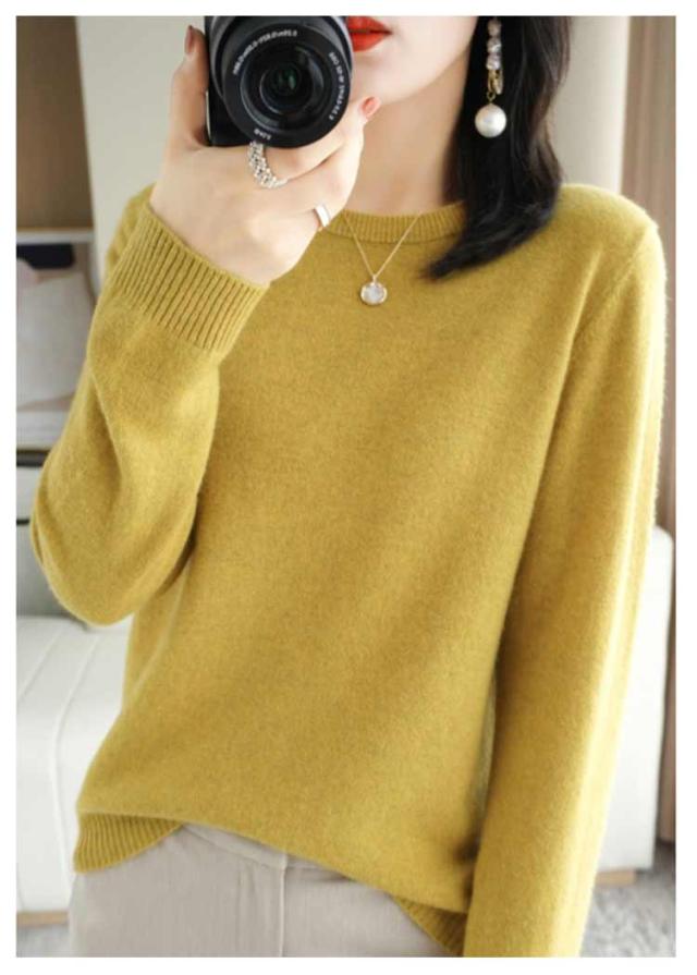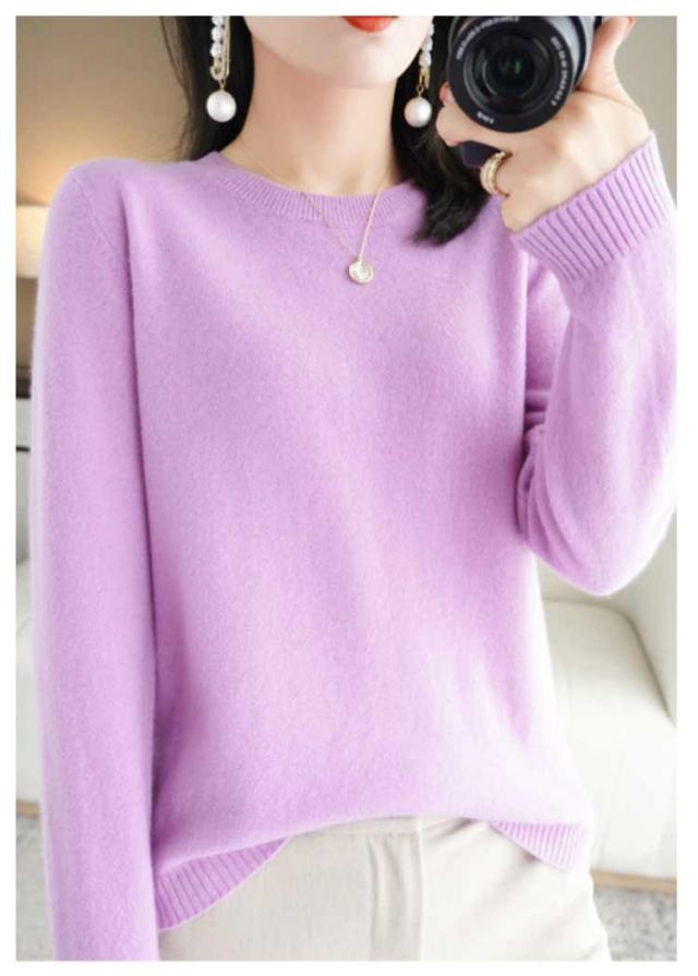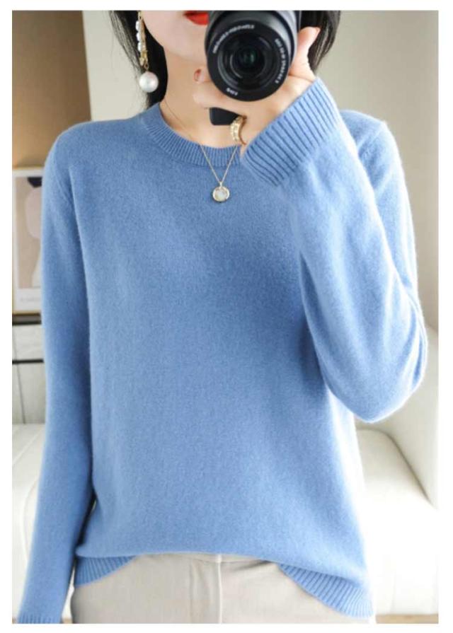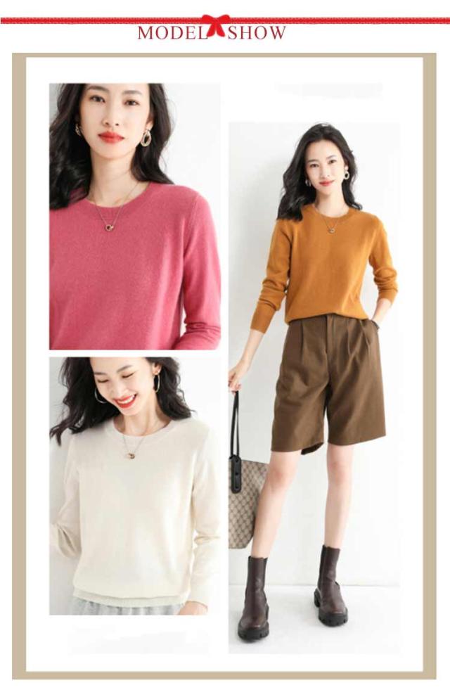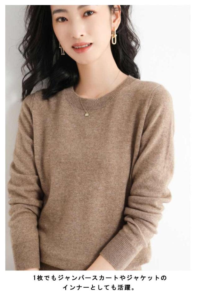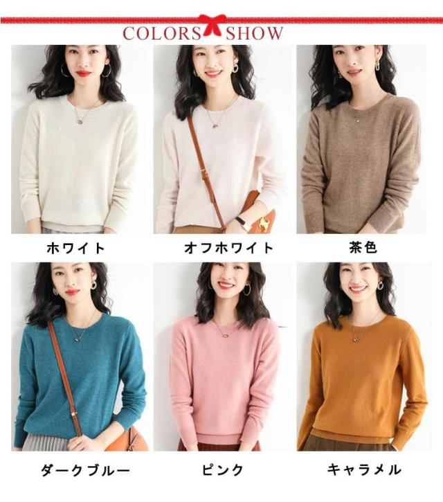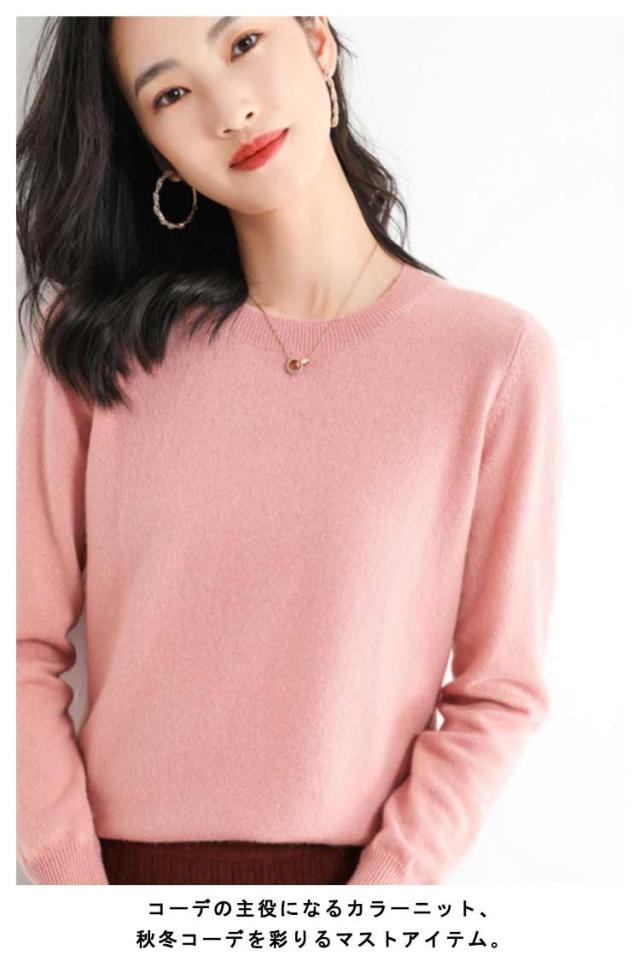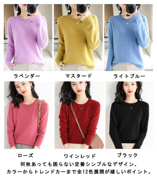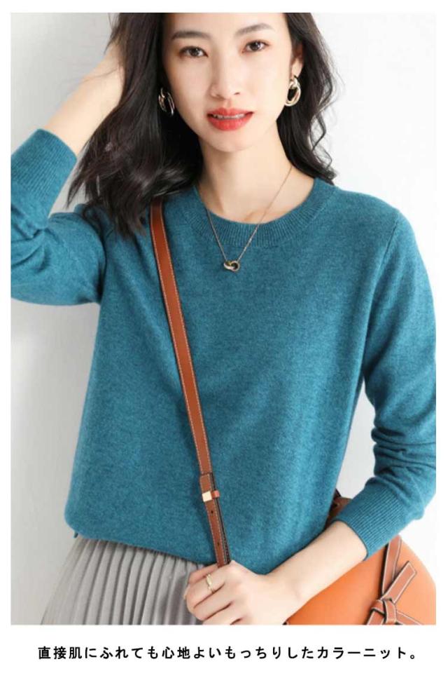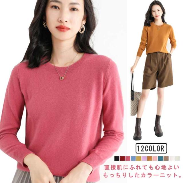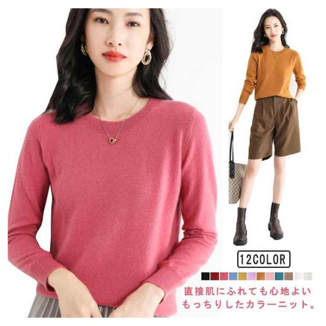 クルーネックニット 長袖 ニット トップス セーター 無地 長袖ニット トップス カラーニット プルオーバー レディース カシミヤタッチレ もっちり 洗える ニットセーター 秋冬 薄手 暖かい きれいめ 定番