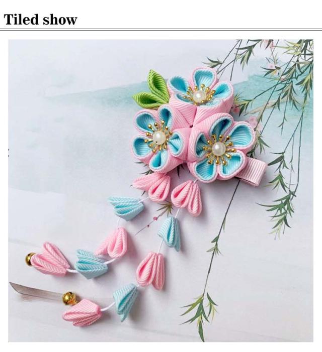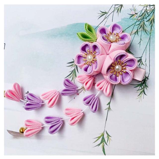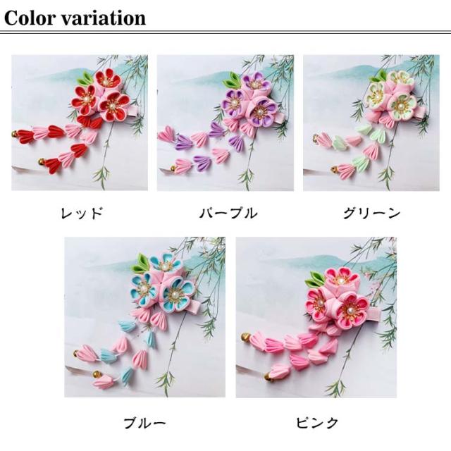| 七五三髪飾り 七五三などのお祝いシーンに、繊細なつまみ細工の髪飾り。 水引飾りが可愛い七五三髪飾り!3才、7才 小学生の卒業式にも! 1つあればお顔周りがパッと華やぐので、特別な日の装いのワンポイントとして最適です。 | |