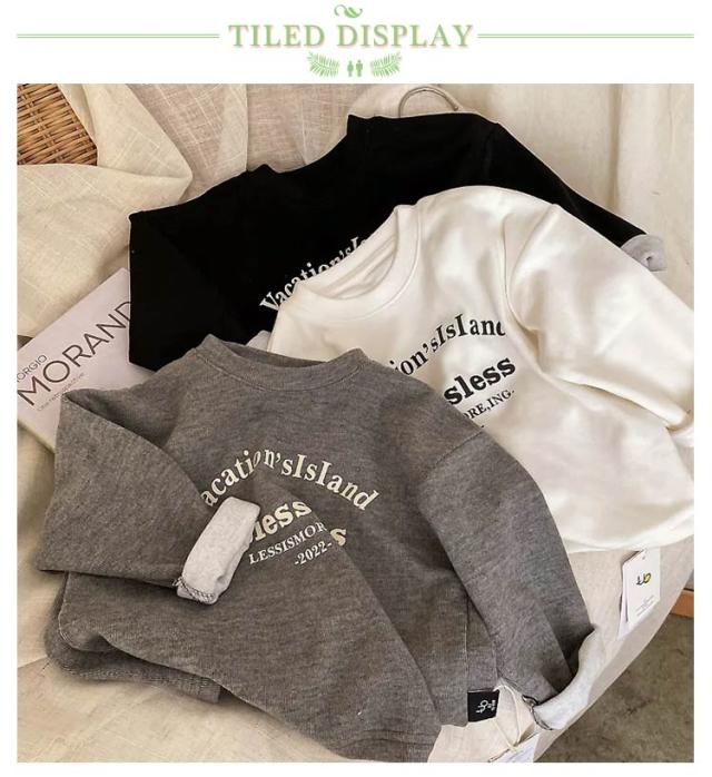 | シンプルで合わせやすいキッズカットソー。 もこもこ裏起毛で秋冬も暖かいながら、ゴワつかず快適な着心地◎ 男女問わず、ユニセックスに着用できます。 ほどよい厚さをしていて、春、秋と冬のいずれも利用いただけます。 | |