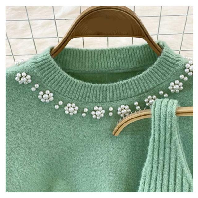 | ニットキャミワンピース×セーターの2点セット。 襟のパールデザインが目を惹くセーター。 一枚もレイヤードも映えます。 スタイルアップも自然と叶います。 やわらかく暖かいニット素材で、これらからの季節に最もおすすめです。 セットアップで着用するのはもちろん、単品としても着回しがしやすいです。 | |
