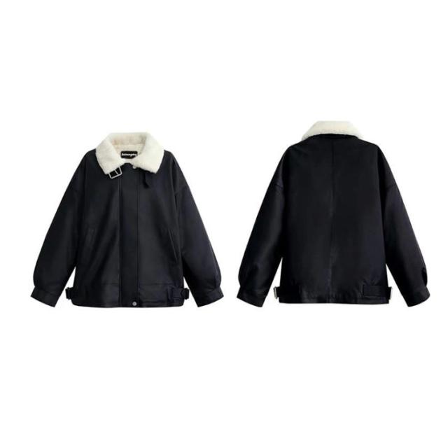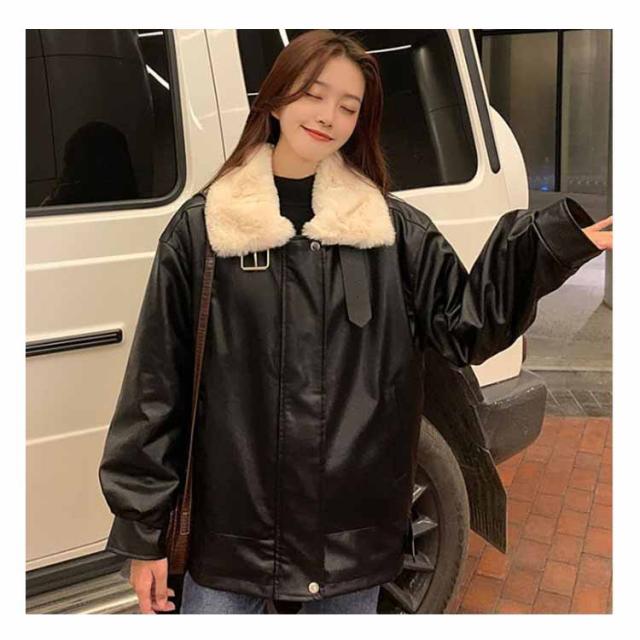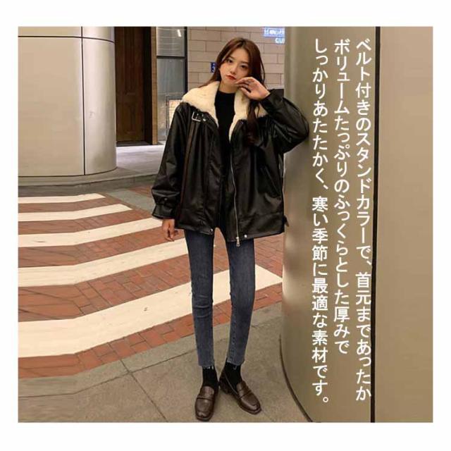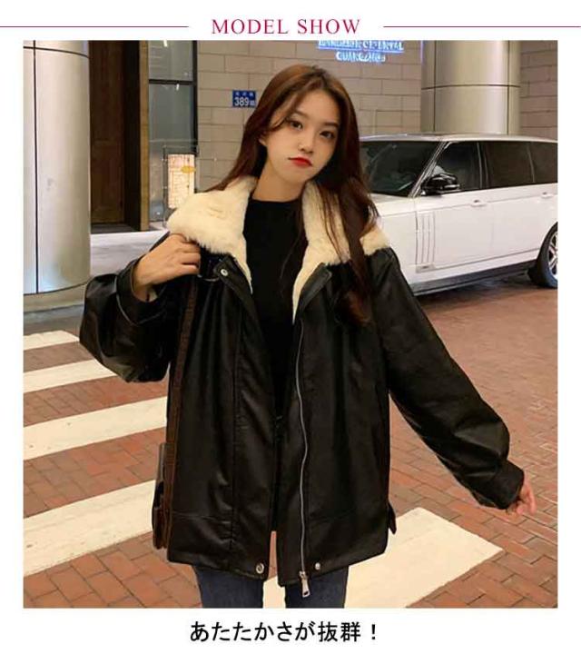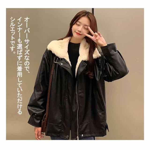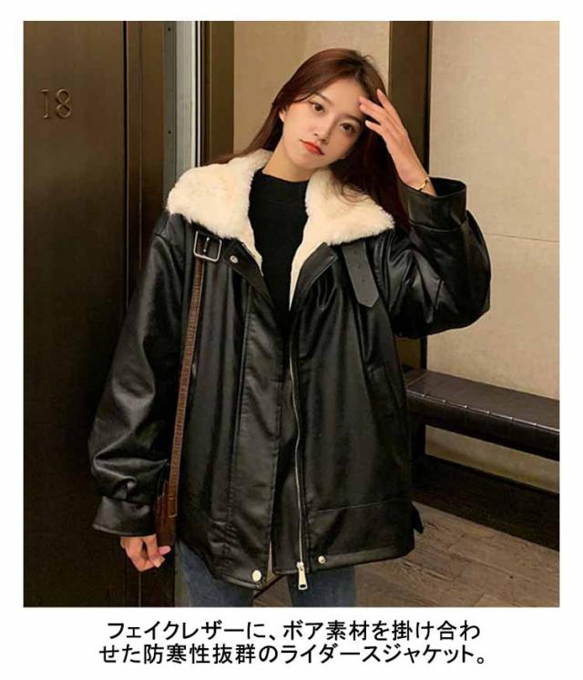 レザージャケット 裏ボア レディース 革ジャケット PU ジャケット スタンドカラー ライダースジャケット フライトジャケット 秋冬 アウター 防寒 厚手 裏起毛 裏ファー ムートンジャケット ムートンコート 立ち襟 オーバーサイズ あたっか おしゃれ 【送無】