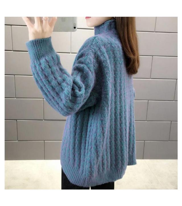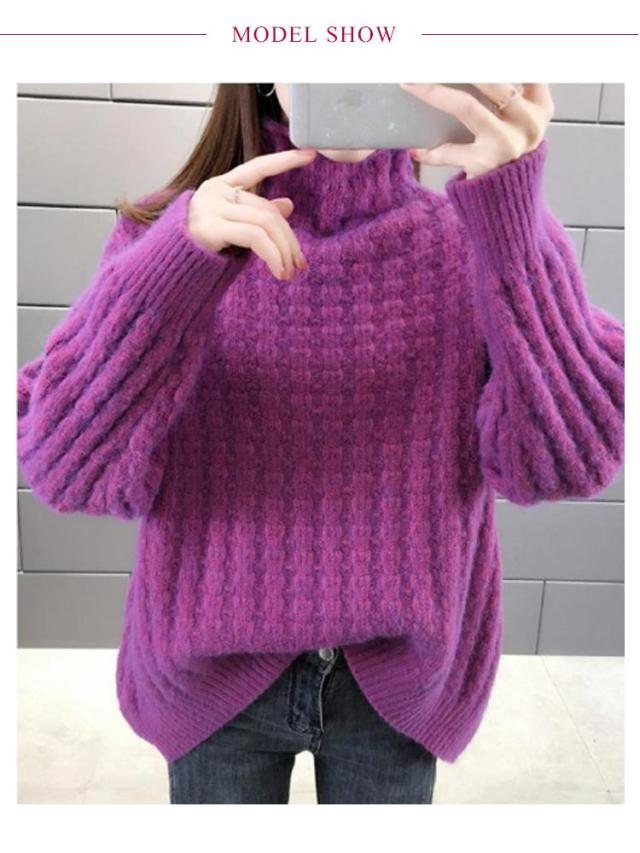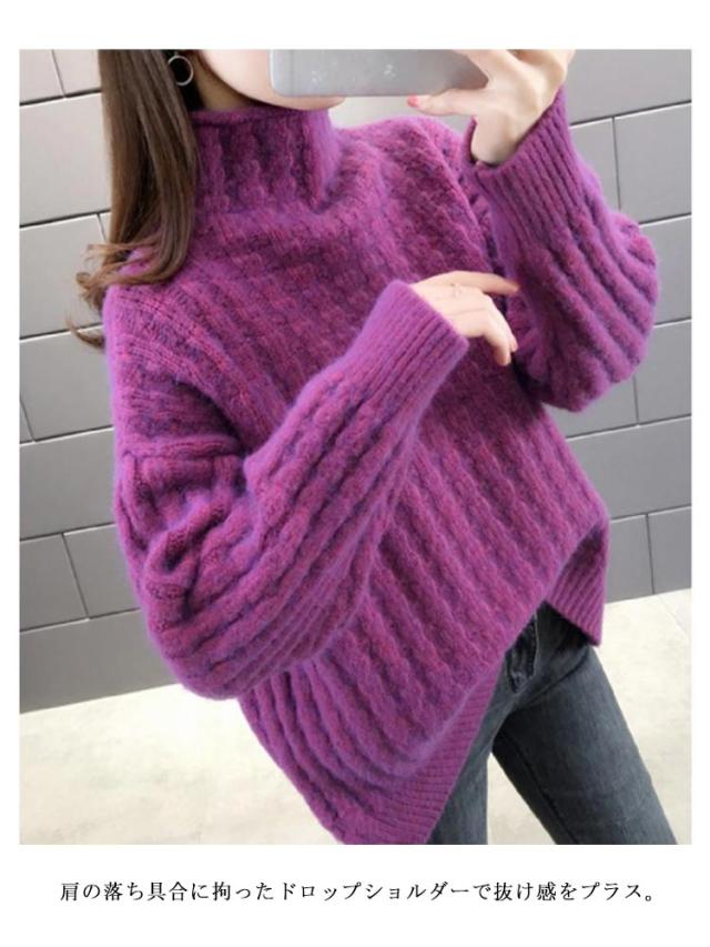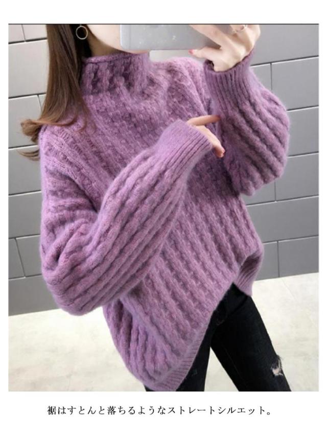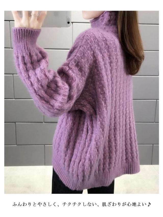 チャンキーニット セーター 秋冬 ハイネックニット レディース 秋冬 送料無料 ふあふあ ヤク風 ニットトップス ケーブルニット ざっくりニット ハイネック ニット リブ 凸凹 無地 ナチュラル 肉厚 体型カバー