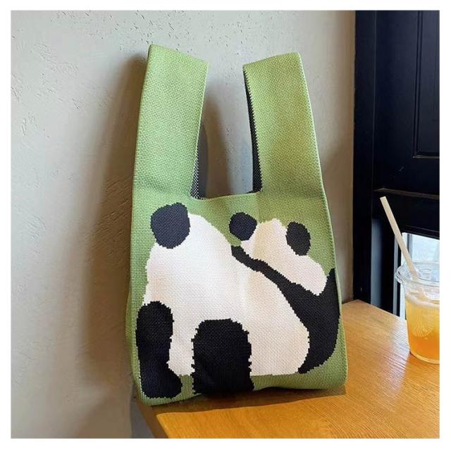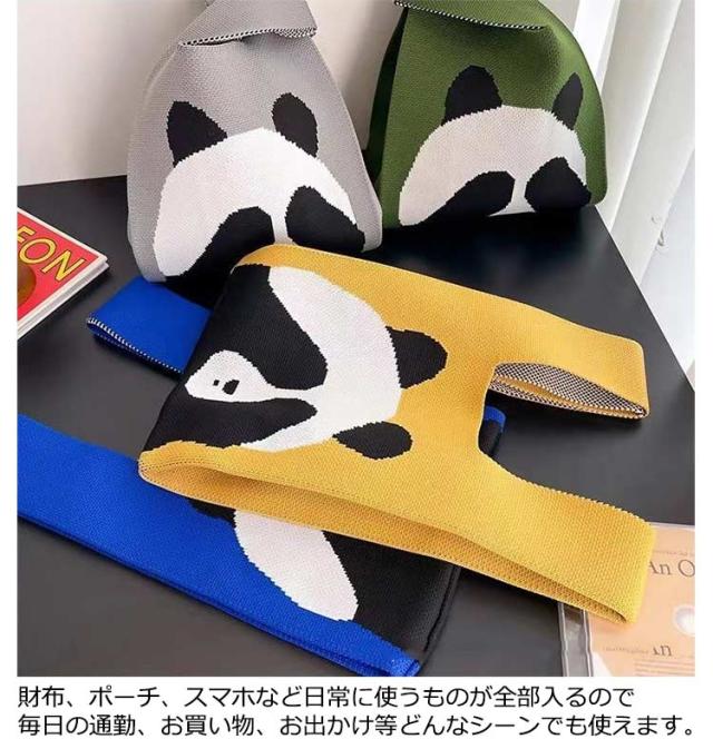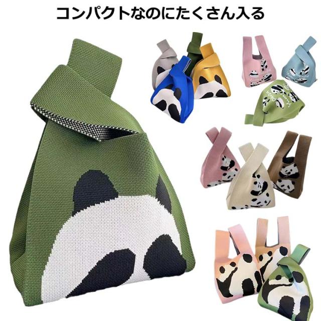 ニット バッグ おしゃれ ニットバッグ トートバッグ レディース トート ミニトート マルシェバッグ かばん 鞄 小さめ エコバッグ お弁当 ミニバッグ サブバッグ お洒落 マルシェバック エコバック ミニバック パンダ柄 パンダデザイン ギフト