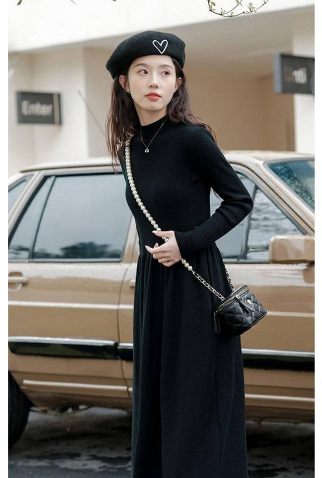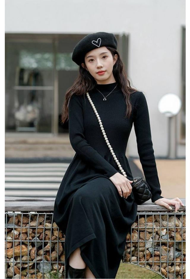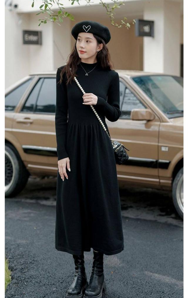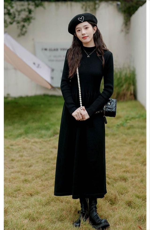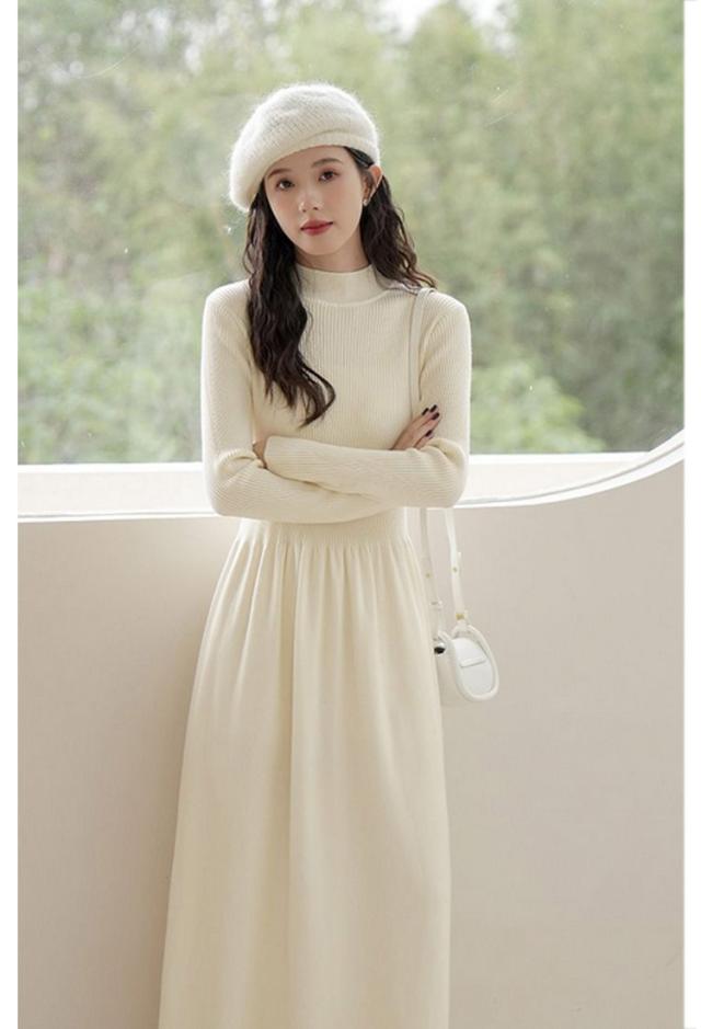 リブニット ワンピース レディース ニットワンピース ハイネック ハーフネック ロング丈 フレアワンピース 長袖 マキシワンピース ロングワンピース きれいめ カジュアル エレガント 上品 シンプル 春 秋 冬 無地 送料無料