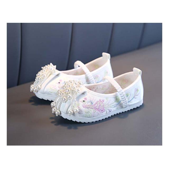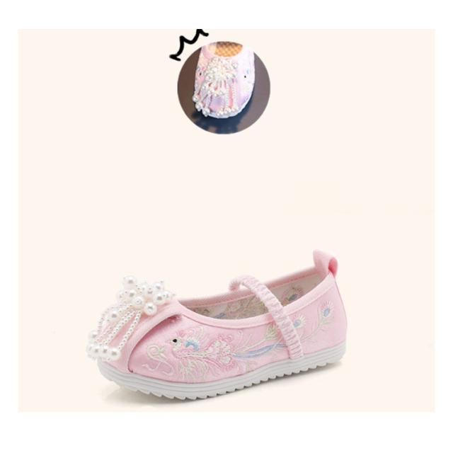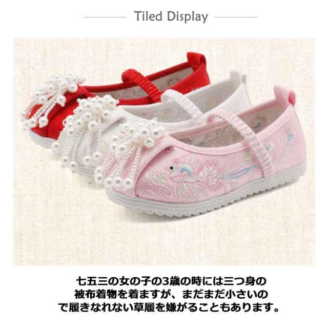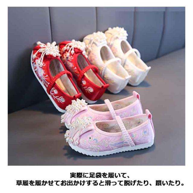 パール付き 和柄 子供用 女の子 七五三 草履のかわりに履ける 痛くない 楽ちん靴 キッズ 刺繍 ぺたんこ ピンク レッド 赤 歩きやすい 着物 和装 草履