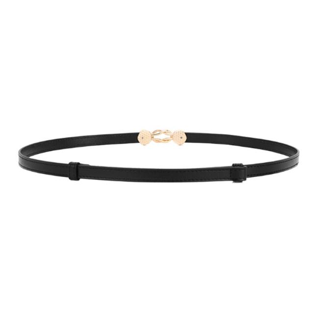 | 手持ちのワンピースが生まれ変わる!!技あり小物。 ワンピースはもちろん、パンツスタイルにも1つプラスするだけで程よいアクセントに! エレガンスベースのコーデにかかせない、ゴールドバックル×本革のとってもおしゃれな細ベルトです。 薄い色のゴールドバックルがすべてのコーデに絶妙なアクセントをカジュアルダウンもOK! シーズン問わずアイテム問わず簡単に使える万能タイプで当店人気上位のマストアイテムです! | |