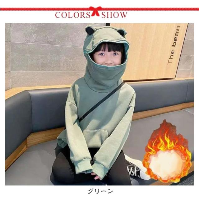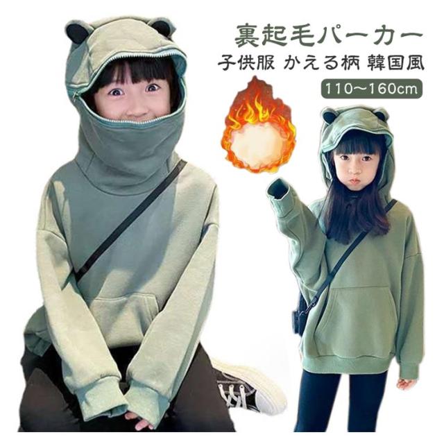 パーカー キッズ 男の子 女の子 裏起毛パーカー カエル 子供服 プルオーバー トップス 長袖 フード付き 蛙 かえる かわいい トレーナー 秋冬 韓国 アウター ゆったり スウェット 通学 通園 110 120 130 140 150 160cm 送料無料
