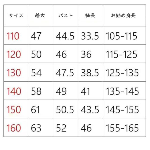 | サイズ | 110 120 130 140 150 160 |