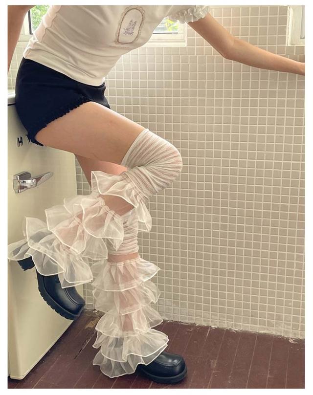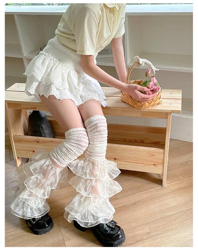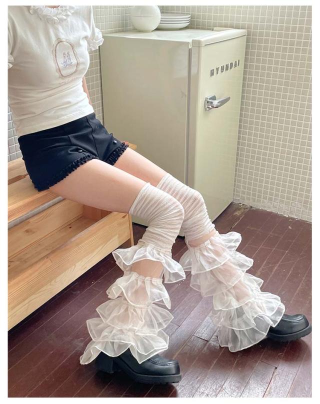 靴下 キッズ レース 靴下 フリル レディース 女性 女の子 白 ホワイト 黒 ブラック ロリータ ソックス 可愛い ガーリー 5層 フリルレース リボン ハイソックス ゆめかわいい チュール フリル ハイソックス 黒 白