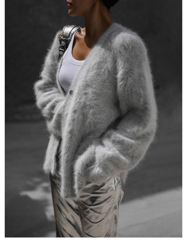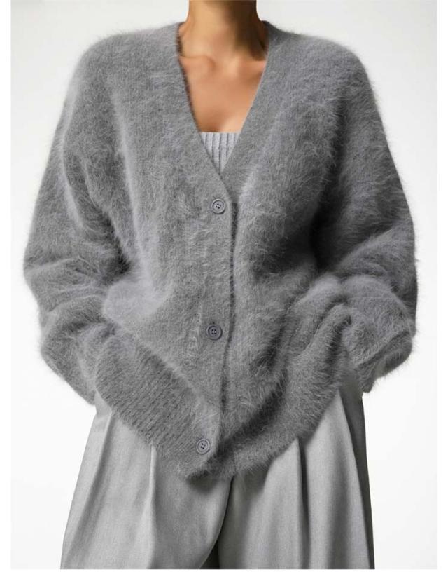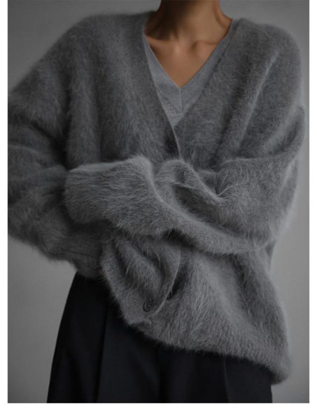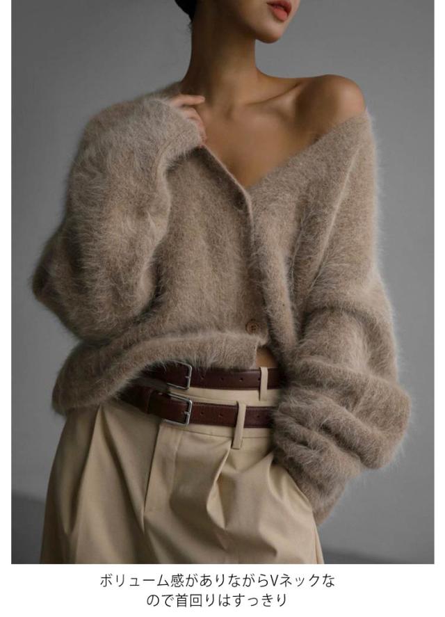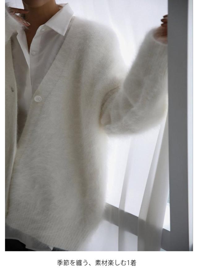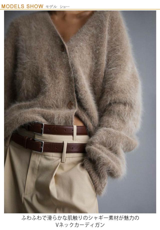 | 新作!カーディガン秋冬定番・シャギーカーディガン ふわふわで滑らかな肌触りのシャギー素材が魅力のVネックカーディガン 気持ちもコーデも心地よく、着るだけで季節感が高まる1着 ボリューム感がありながらVネックなので首回りはすっきり 一枚ですぐに今っぽコーデが完成する、お洒落見せ確実な一枚 季節を纏う、素材楽しむ1着 ふっくら柔らかシャギーニットカーデ | |