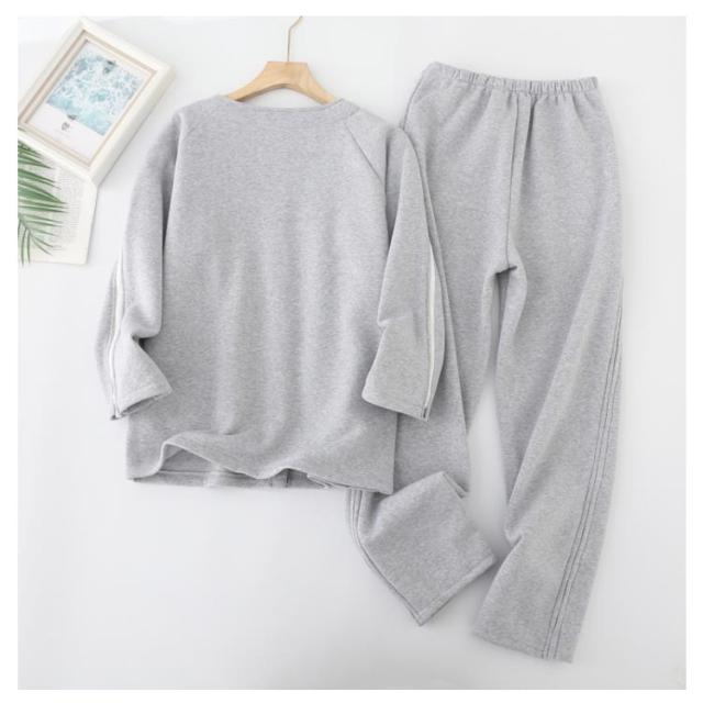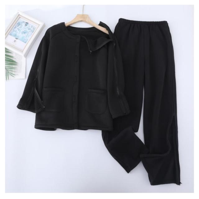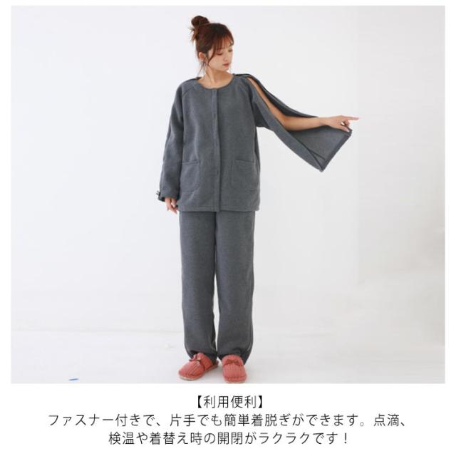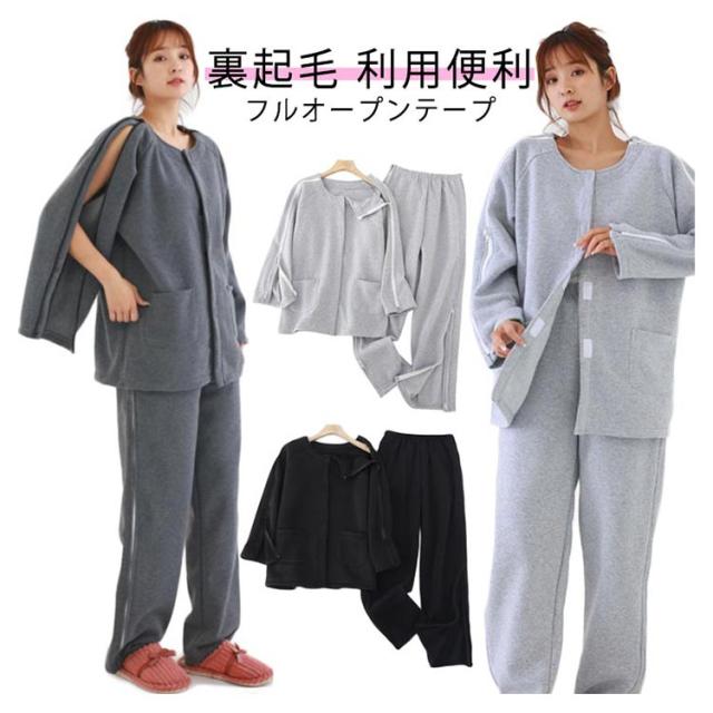介護用 パジャマ 裏起毛 紳士 女性 両開き もこもこ 暖かい メンズ レディース フルオープン 寝たきり 術後 入院 上下セット おむつ交換 お着替 秋冬 介護用パジャマ 介助 部屋着 高齢者 洗い替え 入院 通院 診察 リハビリ 敬老の日 綿