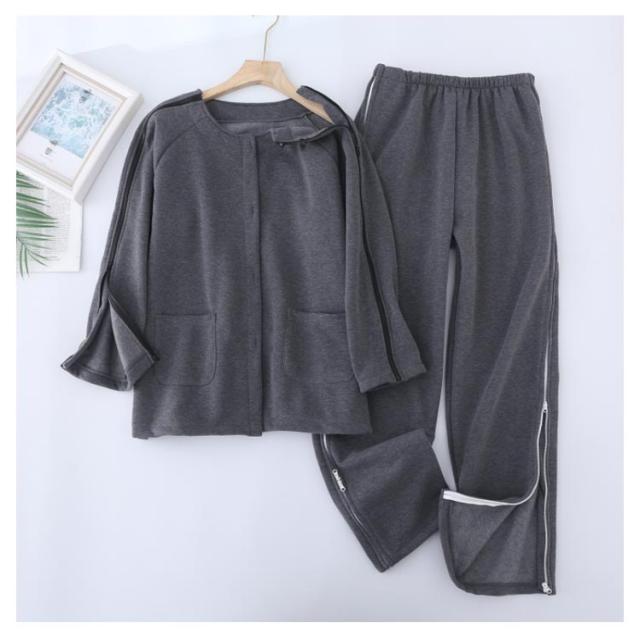 | 【裏起毛】裏起毛があり、冬にも恐れない安心介護できる厚手生地を採用、冬に弱い高齢者や介護の要る患者さんにピッタリです! 【利用便利】ファスナー付きで、片手でも簡単着脱ぎができます。点滴、検温や着替え時の開閉がラクラクです! 【フルオープンテープ】着せる人、着せられる人に親切な介護服が登場します。独自片手でも着れる脱しやすい服です。片麻痺(片マヒ)/半身まひ、リウマチ、手の不自由な方にも適用します。 【デザイン】落ち着いた色目に見た目は普通のパジャマに見えるが、実は機能性と実用性満杯の介護専用パジャマです。 | |