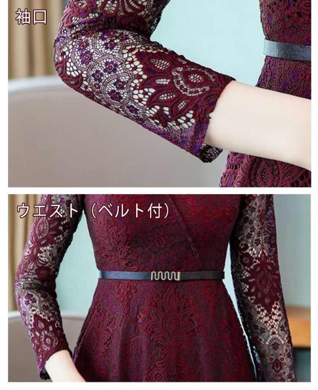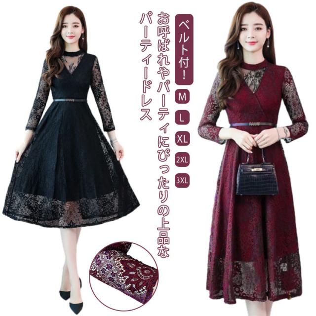 パーティードレス 秋冬 冬 ロング丈 パーティドレス 同窓会 二次会 aライン レース ベルト付き 結婚式 ワンピース ドレス 大きいサイズ 大人 発表会 演奏会 謝恩会 成人式 ワンピース エレガント 大人 フォーマル 20代 30代 送料無料