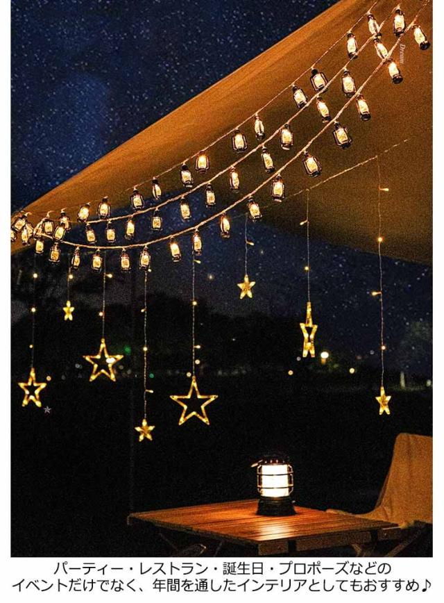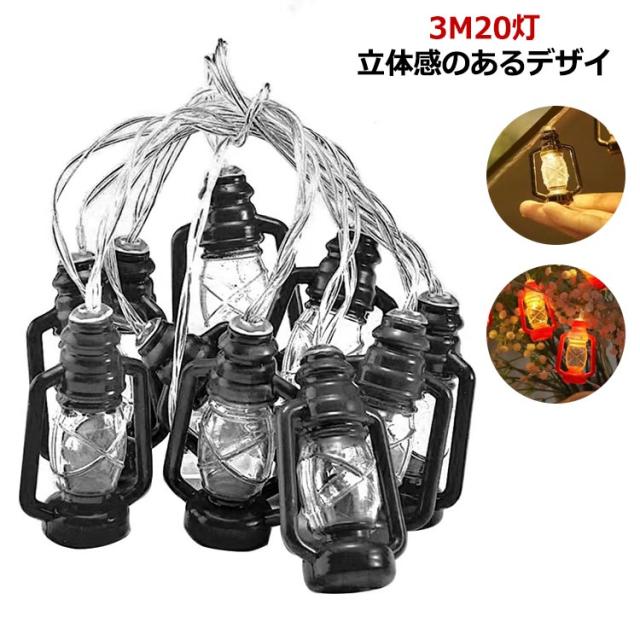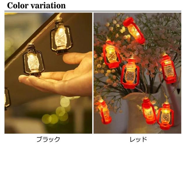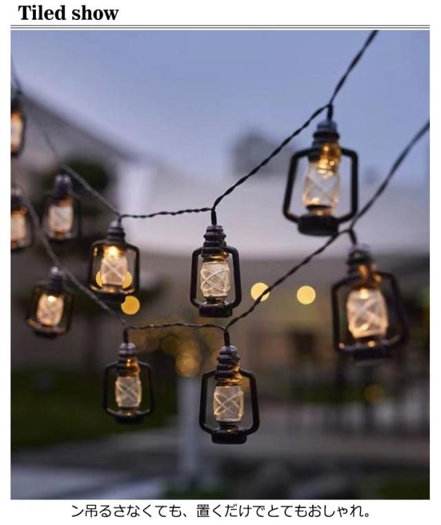 イルミネーションライト ガーランドライト LED ランタン型 防雨型 アウトドア ライト キャンプ ストリングライト おしゃれ 飾りライト 北欧 デコライト 3M 20球 USB クリスマス パーティー インテリア 黒 レッド ブラック 誕生日 庭 祭り 商店街