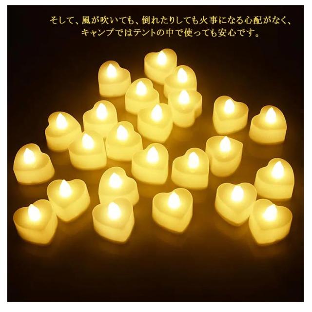 | LEDの電子ライトを、1個セットの販売になります。インテリアなどに最適です。 火を使わない、熱くもならないので手で触っても安全です。小さい子供やペットがいる環境でも安心して使えます。 そして、風が吹いても、倒れたりしても火事になる心配がなく、キャンプではテントの中で使っても安心です。 | |