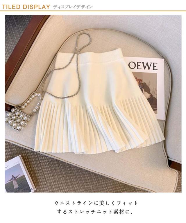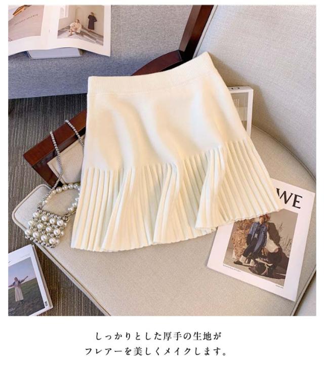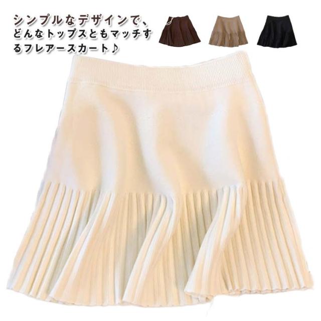 プリーツスカート ニットスカート レディース スカート 秋冬 ボトムス ミニ スカート ショート丈 ストレッチ フレアスカート ミニ丈 ウエストゴム aライン おしゃれ オフィス シンプル 大人 カジュアル 無地 きれいめ お出かけ 韓国ファッション 可愛い キュート