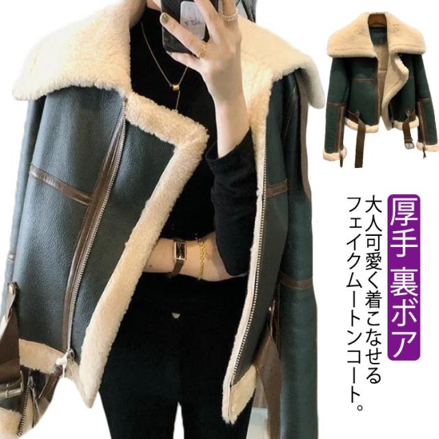 ムートン風 ライダースジャケット ボアジャケット レディース フェイクムートンジャケット ボアコート ショート丈 ジャケット 厚手 裏ボア 暖かい 秋冬 おしゃれ 防寒