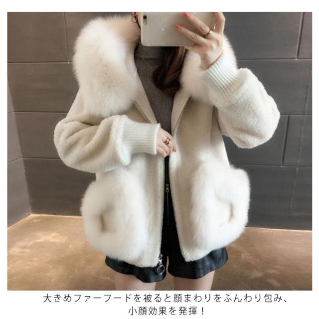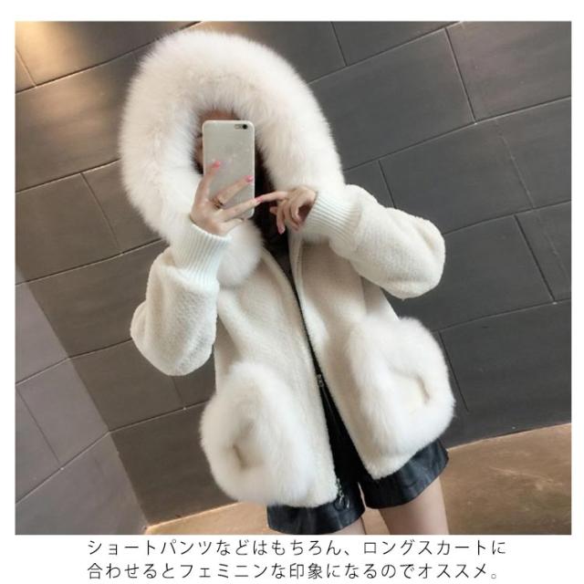 ふわふわ ボアコート ファーコート ショートコート ムートン風コート コート ボア アウター レディース ジャケット フェイクムートン 防寒 カジュアル 大人 フード付き 無地 厚手 長袖 前開き 秋冬 暖かい