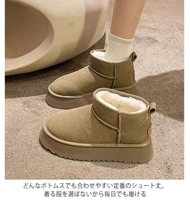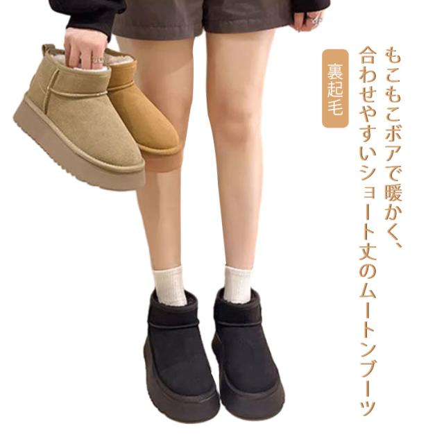 ムートンブーツ ショート丈 レディース ショートブーツ ムートン ローヒール ぺたんこ 裏起毛 あったか カジュアル おしゃれ 冬 防滑 痛くない 歩きやすい 防寒 暖かい おでかけ カフェ 買い物 普段使い 旅行 ドライブ 雪遊び 送料無料