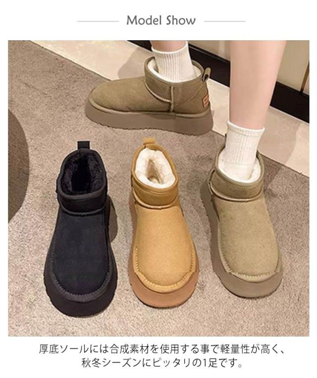 | もこもこボアで暖かく、合わせやすいショート丈のムートンブーツ 厚底ソールによりボリューム感のあるムートンブーツ。 ボアが履き口からつま先まで内側素材として配置しており、高い保温性と快適な履き心地になっています。 どんなボトムスでも合わせやすい定番のショート丈。着る服を選ばないから毎日でも履ける! 厚底ソールには合成素材を使用する事で軽量性が高く、秋冬シーズンにピッタリの1足です。 | |
