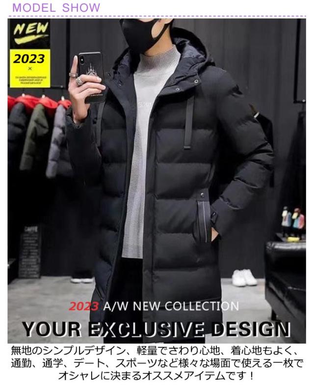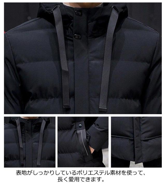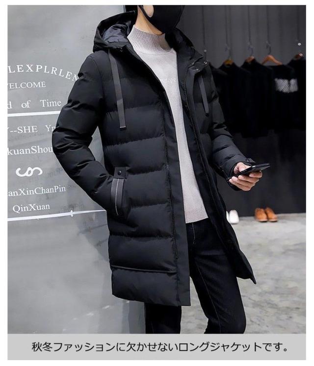 ダウン風コート メンズ ロング丈 秋冬 中綿コート ロング 中綿ジャケット アウター コート フード付き ロングコート ファスナー 暖かい 厚手 着心地いい 防風 防寒 あったか 無地 アウトドア 通勤 通学 カジュアル 韓国風