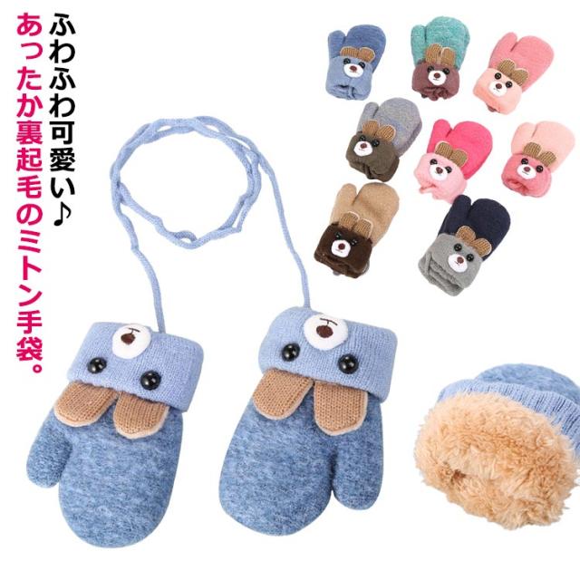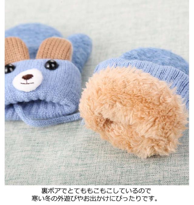 送料無料 キッズ 手袋 あったかミトン 裏ボア 防寒 のびのび グローブ 子供 裏起毛 ミトン 保温 かわいい 女の子 男の子 暖かい 紐付き ニット 厚手 寒さ対策 お出かけ 雪遊び スキー アウトドア 通園 通学 誕生日 クリスマス