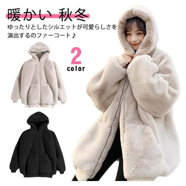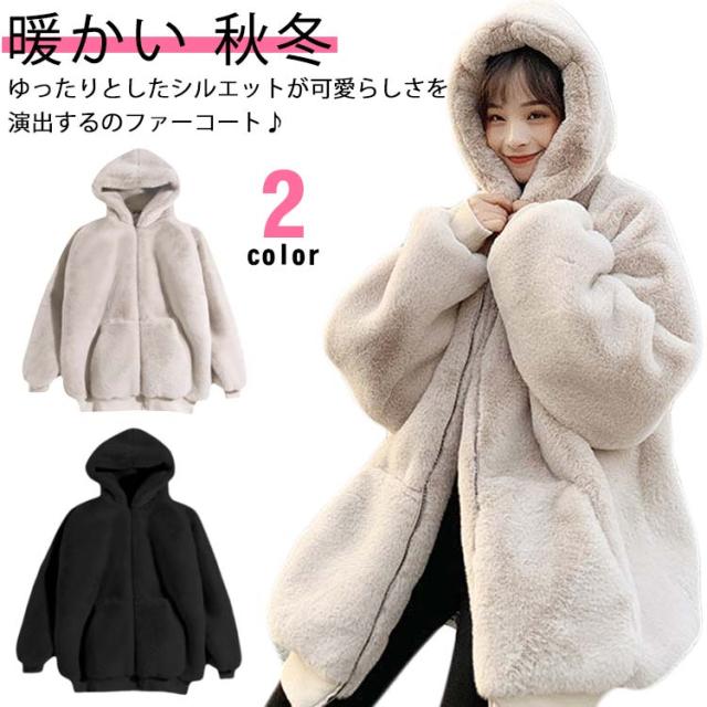 ボアコート レディース フード付き アウター ファーコート 防寒 アウトドア 毛皮コート 秋冬 ふわふわ もこもこ ゆったり 暖かい 韓国ファッション カジュアル 厚手 可愛い お洒落