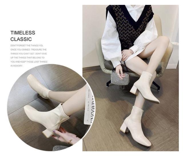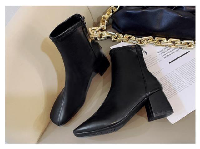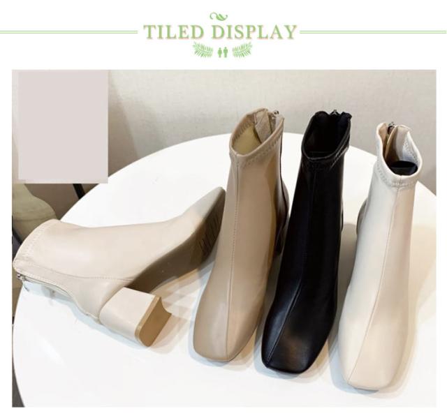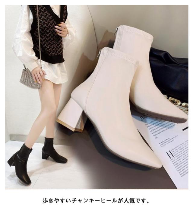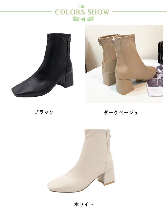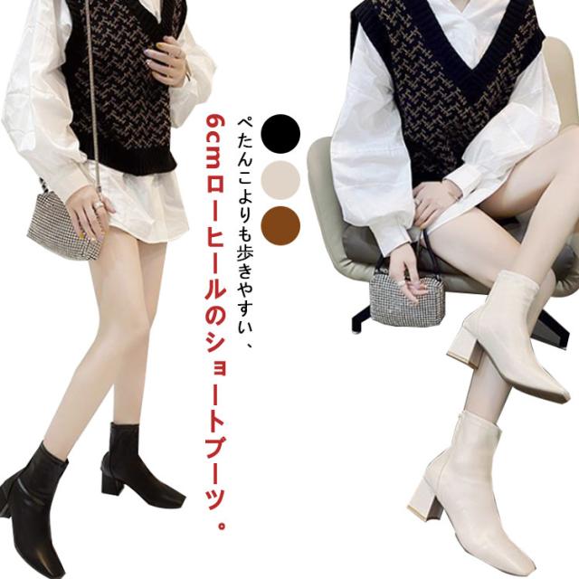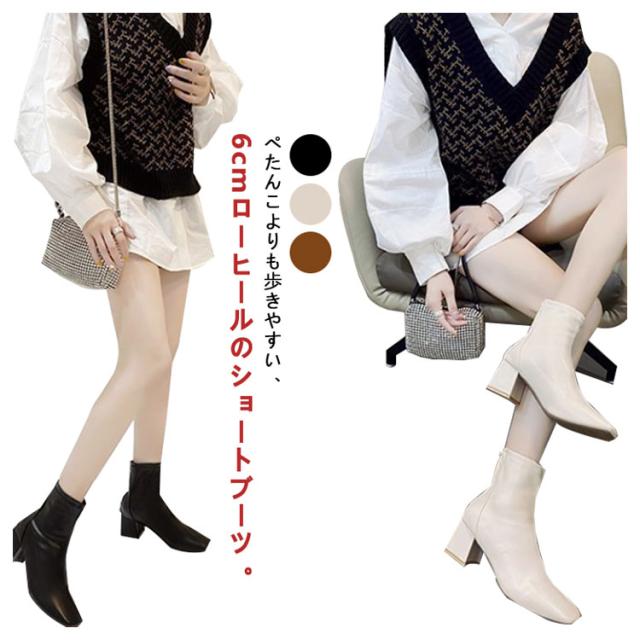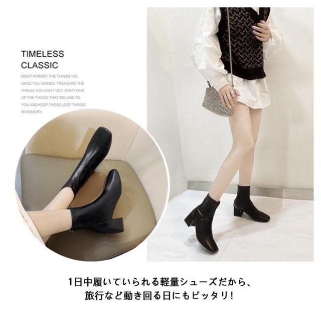 歩きやすい ショートブーツ チャンキーヒール レディース ブーツ ストレッチ スクエアトゥ 疲れない 立ち仕事 痛くならない 春 秋 冬 靴 美脚 ファスナー付き シンプル 20代 30代 40代