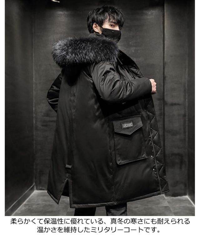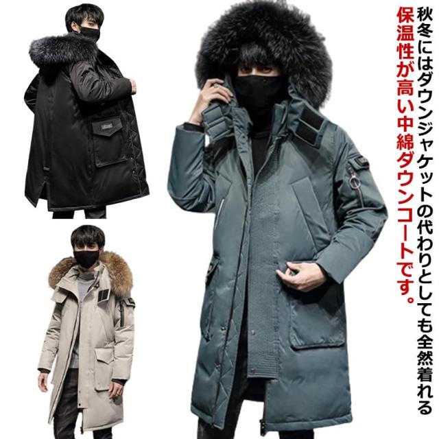 中綿コート メンズ ファー付き ミリタリーコート ロング 中綿ジャケット アウター コート ダウン風ジャケット ブルゾン アウター フード付き 軽量 防寒 撥水 通勤 通学 大きいサイズ 韓国風 暖かい 防寒服 保温 秋冬 紳士 男性