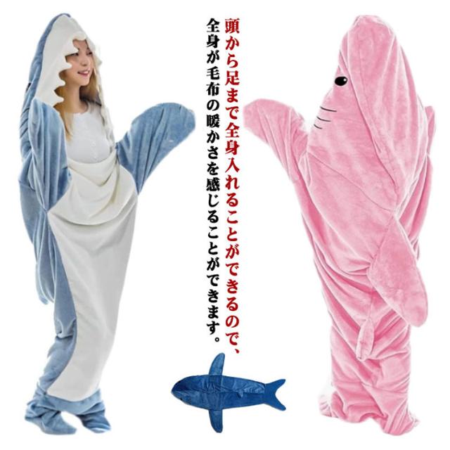 サメ寝袋 サメ着る毛布 ブランケット きぐるみ SNS 大人用 子ども用 きぐるみ パジャマ ルームウェア フランネル 寝袋 穿く毛布 暖かい 防寒 お昼寝毛布 冷房対策 サメブランケット かわいい ふわふわ おしゃれ 面白い プレゼント