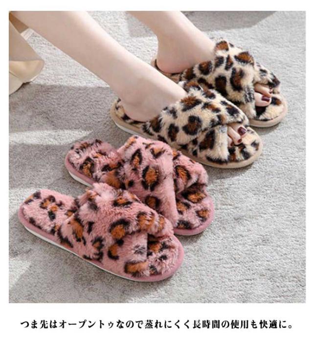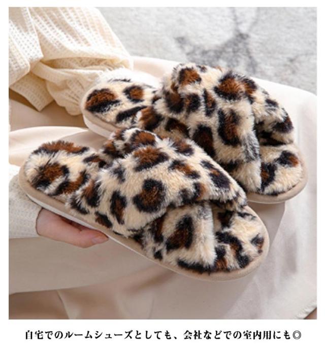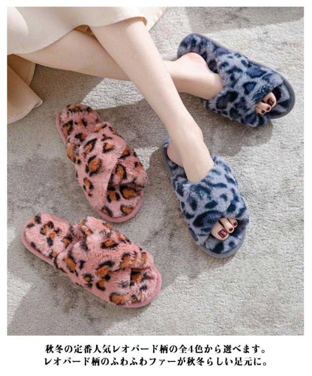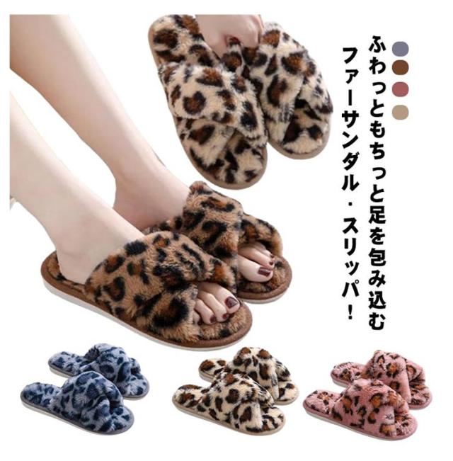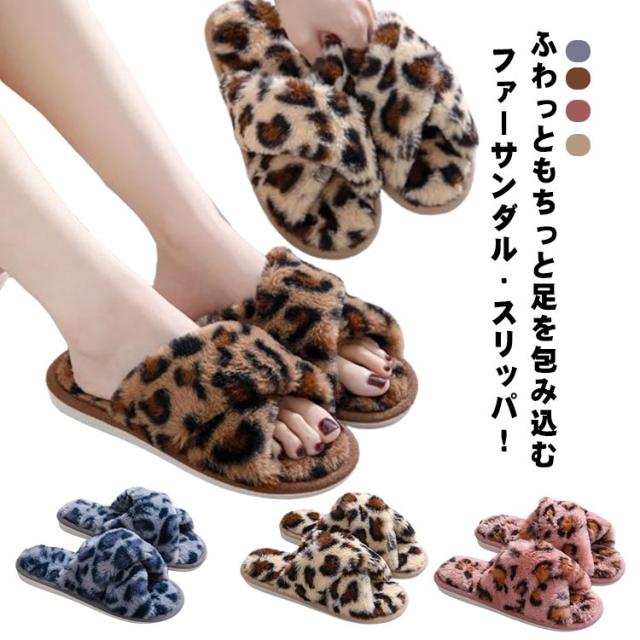 ファースリッパ ファーサンダル レディース 靴 ルームシューズ スリッパ フェイクファー もこもこ レオパード 柄 ヒョウ柄 かわいい 室内スリッパ 秋冬 シューズ 温かい モコモコ 滑り止め 室内履き 防寒 冬物 来客用 軽量 洗える