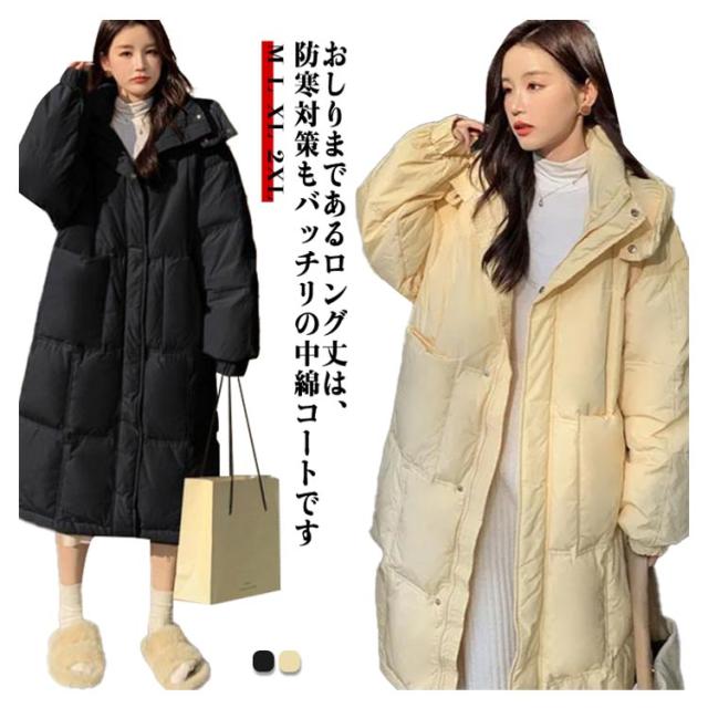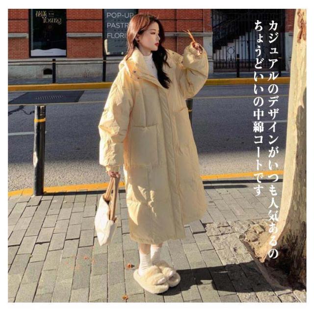 中綿コート 中綿ジャケット レディース フード付き アウター コート ロング丈 中綿入り ダウンジャケット ダウン風コート ロングコート 大人可愛い 防寒 軽量 厚手 暖か 膝丈 カジュアル 秋冬 防寒服 通勤 通学 きれいめ 冬 韓国風
