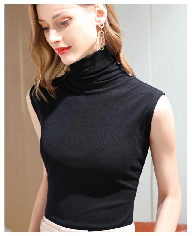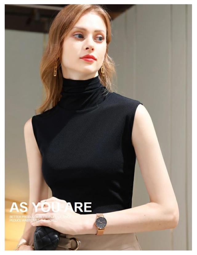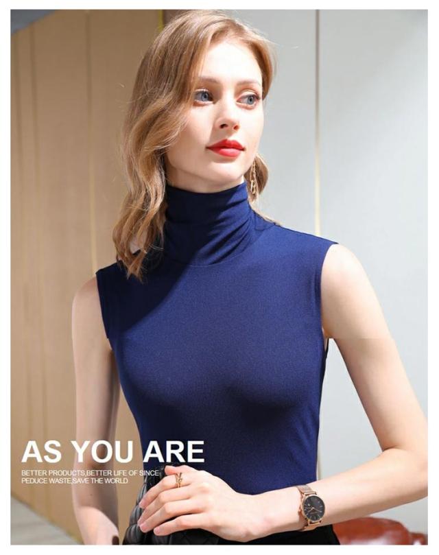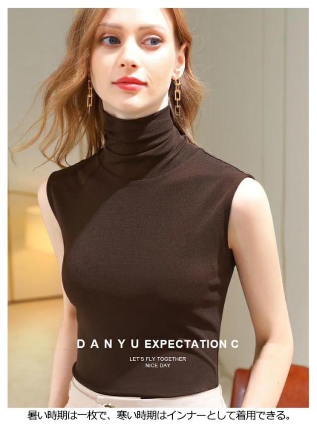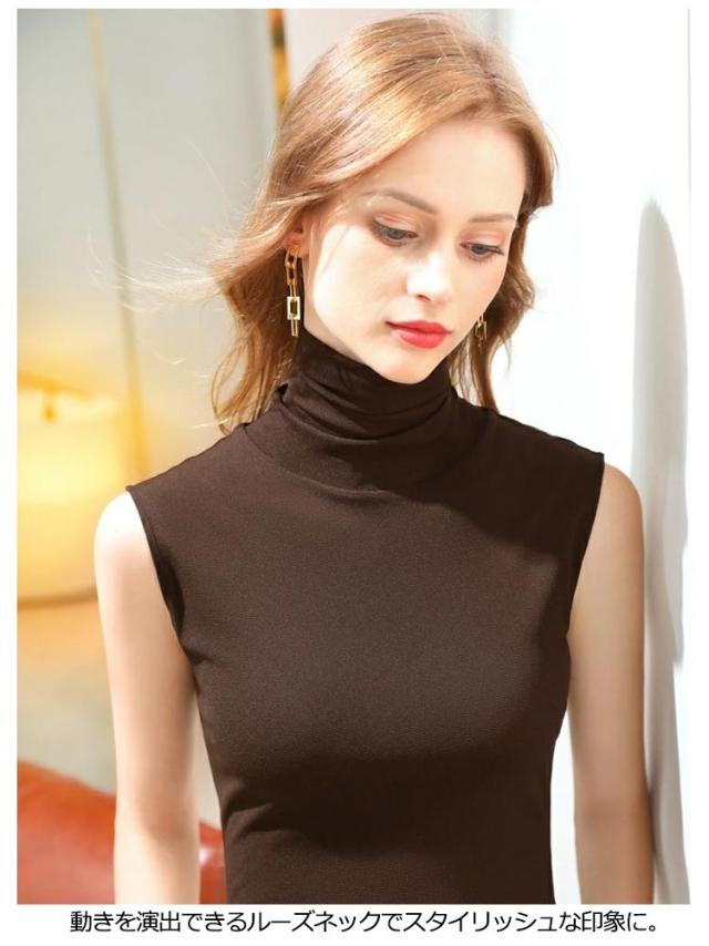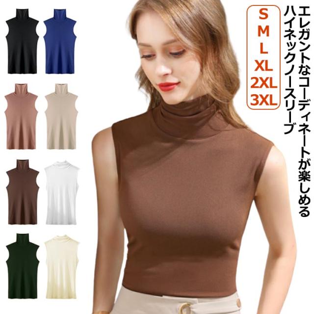 タートルネック ボトルネック ノースリーブ モダール 薄手 春夏 秋冬インナー ノースリーブ ノースリブ トップス カットソー コットン 綿 ハイネック ノースリーブ タートルネック ハイネック 送料無料