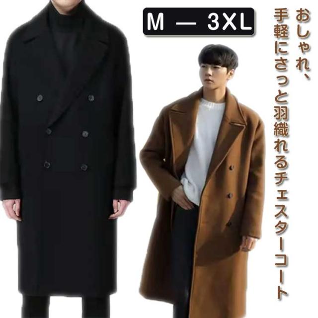 ダブル チェスターコート メンズ ロングコート 秋冬コート ビジネスコート ダブルコート アウター 防寒着 暖かい 高級感 紳士服 ビジネス 防寒コート あったか 中綿入り 中綿無し モード M L XL 2XL 3XL