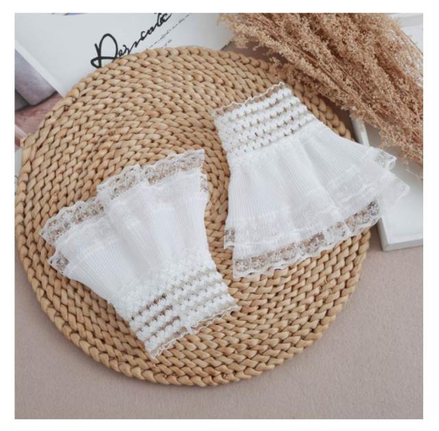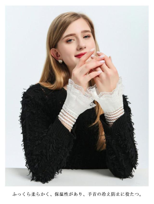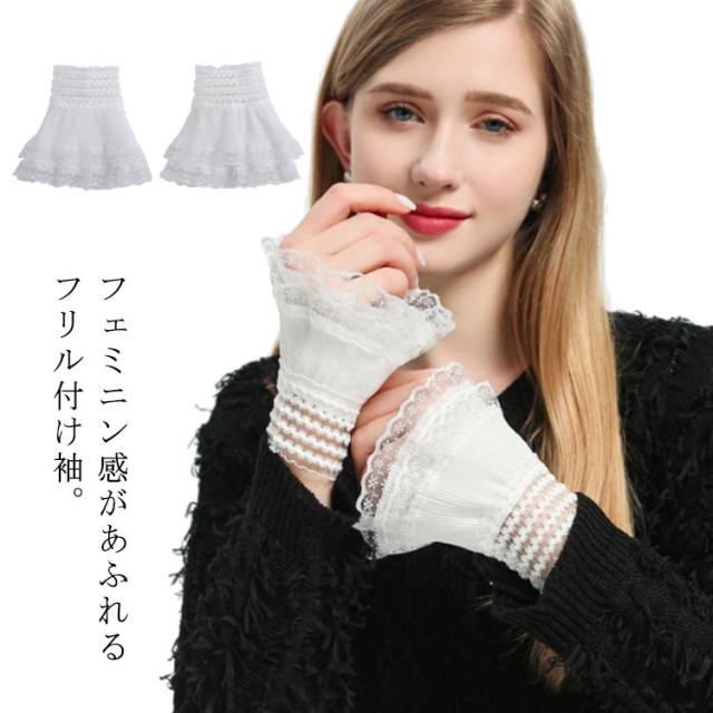 付け袖 レース つけ袖 レディース フリル ふんわり 腕カバー アームカバー 春 秋冬 かわいい 重ね着 レイヤード 保温 ニット アームウォーマー 厚手 おしゃれ 暖かい 小物 防寒 寒さ対策 ホワイト 白 送料無料
