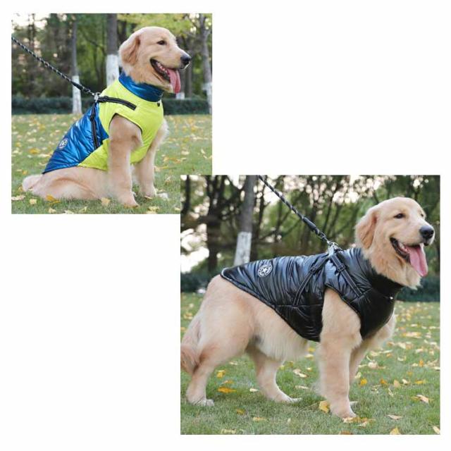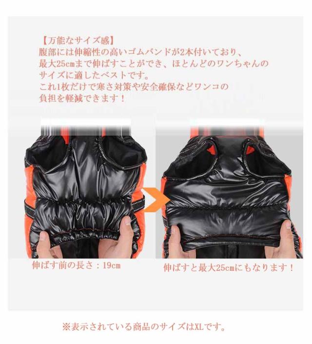 | 汚れ・雨・防寒対策に♪ 暖かい背中ファスナーのジャケットです! 【こだわりのデザイン】 背中のファスナーで簡単着脱!お洋服初心者や苦手なワンコも短時間でお着替えできるのでおすすめ。 お洋服にハーネスと丈夫なDリングも付いているので、お出かけやお散歩も楽々♪ 動きやすい袖無しタイプで、わんちゃんも負担になりません。 【夜間でも安全性バツグン!】 リードには夜間反射材が付いているので、毛色の濃いワンコでも夜のお散歩でも安心。 【雨や防寒対策に】 表面は防水加工で、汚れにも強い。雨の日でも清潔するのは簡単! 内側はPP綿充填素材で作られており、断熱効果が優れています。 【万能なサイズ感】 腹部には伸縮性の高いゴムバンドが2本付いており、最大25cmまで伸ばすことができ、ほとんどのワンちゃんのサイズに適したベストです。 これ1枚だけで寒さ対策や安全確保などワンコの負担を軽減できます! | |