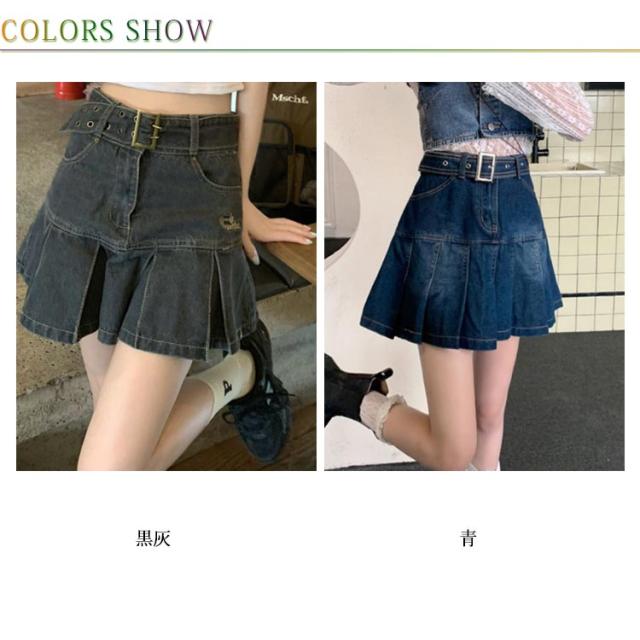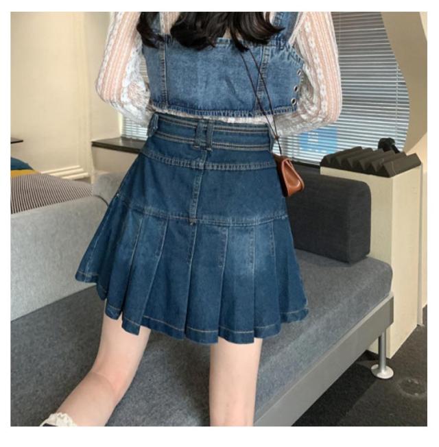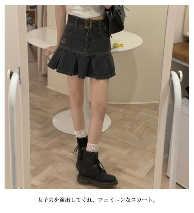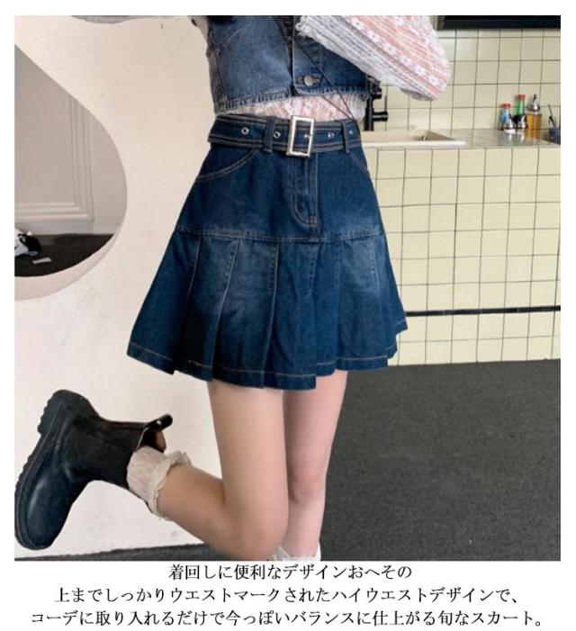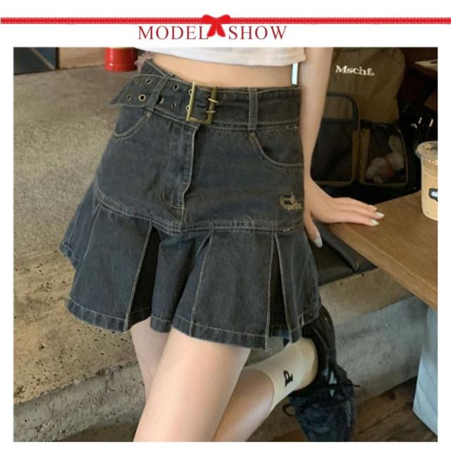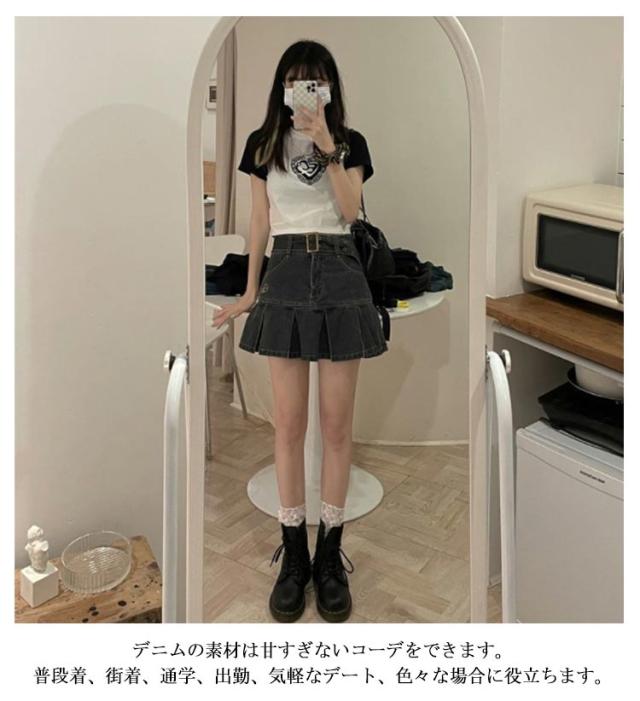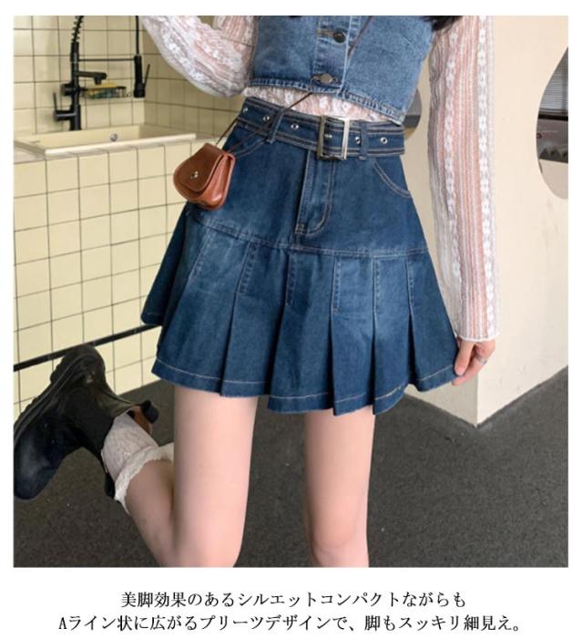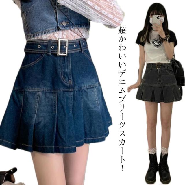 デニム ミニスカート プリーツ スカート デニムスカート プリーツスカート フレアスカート ハイウエスト 韓国ファッション おしゃれ 膝上 美脚 低身長 可愛い 学生 高校生 S M L XL 2XL 3XL 4XL 5XL