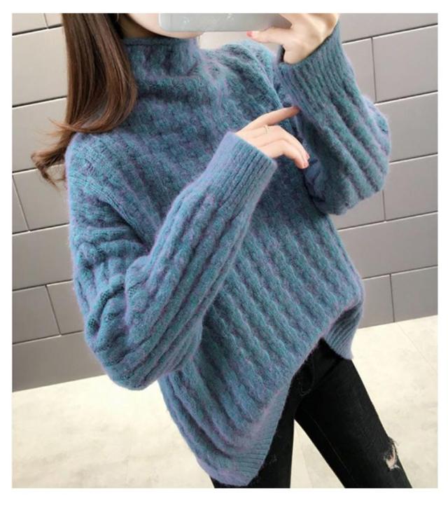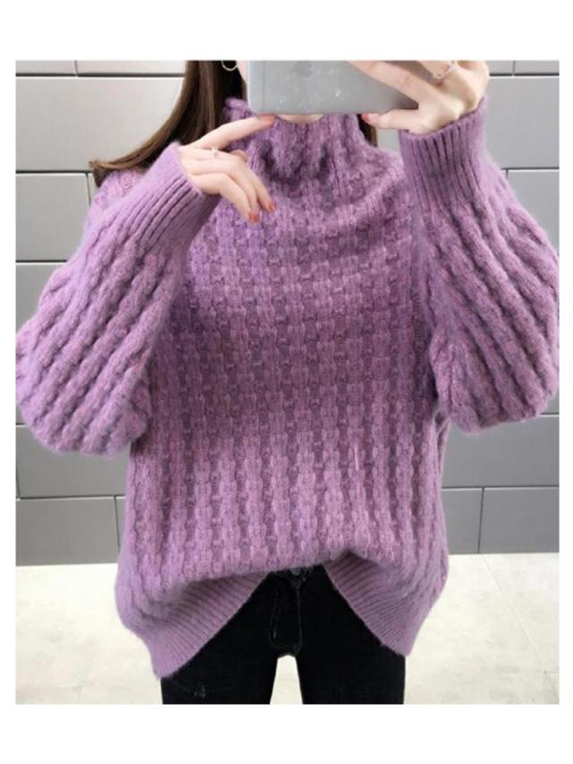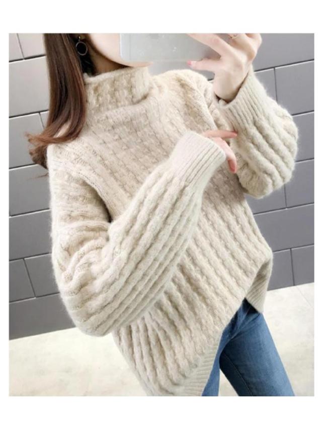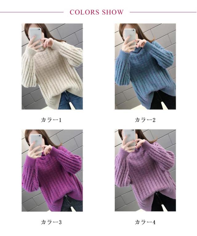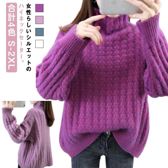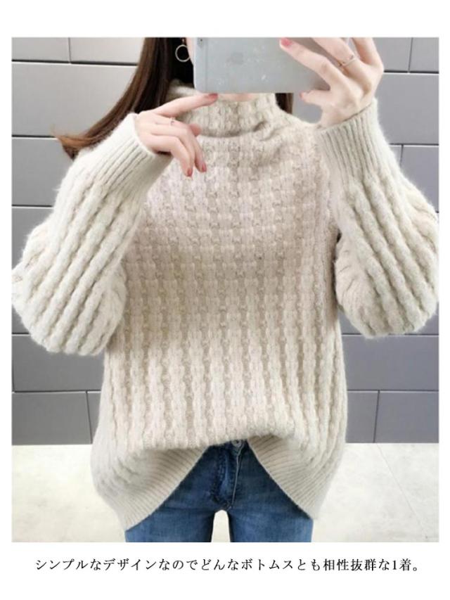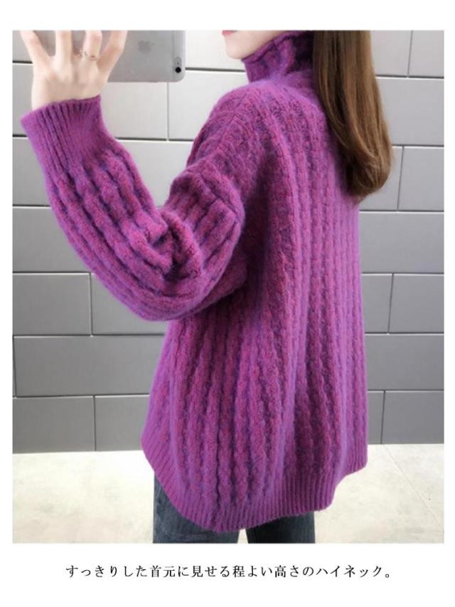 チャンキーニット セーター 秋冬 ハイネックニット レディース 秋冬 送料無料 ふあふあ ヤク風 ニットトップス ケーブルニット ざっくりニット ハイネック ニット リブ 凸凹 無地 ナチュラル 肉厚 体型カバー