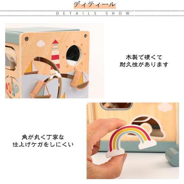 | お子様も大満足!5種類の遊びで長く楽しめる 指先を使う遊びがたくさん詰まった海のあそび箱。 あそびの要素が盛りだくさんなので。 お子様が飽きることなく長く遊べます。 ボリュームたっぷりでギフトにもお勧めです 1.ビーズあそび 2.パズルあそび 3.型はめあそ 4.回転あそび 5.迷路あそび | |