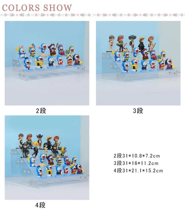 コレクションケース アクリル 2段 3段 4段 透明 収納 什器 長方形 ディスプレイラック 展示 ボックス スタンド 雛壇 小物 フィギュア 化粧品 メイクボックス 陳列 ホビー ショーケース プラスチック