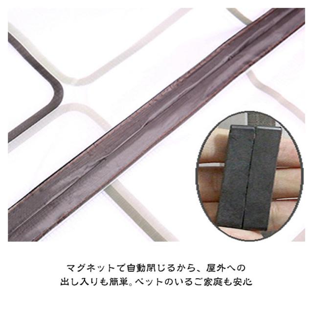 | 明るさはそのまま、冷気や熱気をカット♪ 通年活躍できるクリアタイプのドアカーテン。 ドアや窓枠全体をカバーできて冷気の侵入、暖気の流入を防ぎます。 ガラスの種類を選ばず、窓枠に貼るだけで保温効果UP。 窓枠に貼るだけで二重窓構造に、空気層を作ることにより、冷暖房効率up。 マグネットで自動閉じるから、屋外への出し入りも簡単。ペットのいるご家庭も安心。 面倒な工事が不要、女性の方でも簡単に操作できます。 リビング、居間、玄関、和室、洋室、廊下にといろいろな場所に活躍できる間仕切り のれんです。 | |
