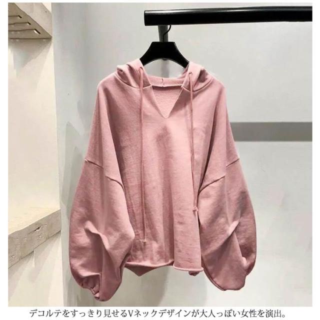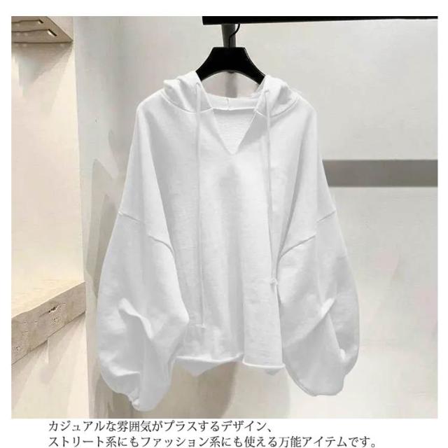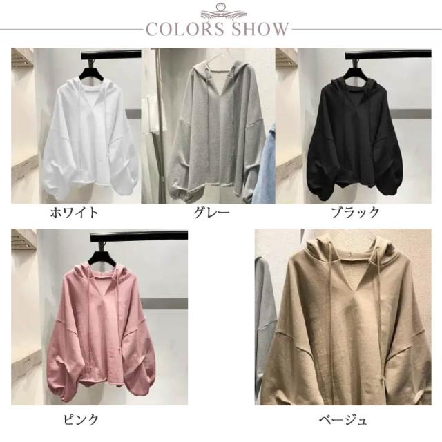 プルオーバー パーカー ドルマンスリーブ ショート丈 レディース フード付き Vネック ボリューム袖 カジュアル トップス おしゃれ レイヤード フードパーカー 重ね着 無地 シンプル ゆったり カジュアル ギフト プレゼント 送料無料 大きいサイズ