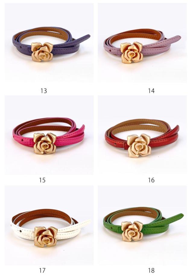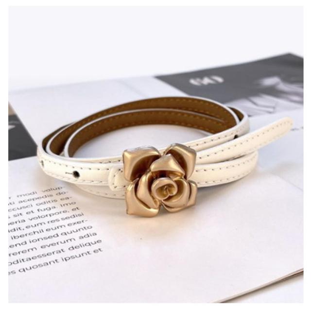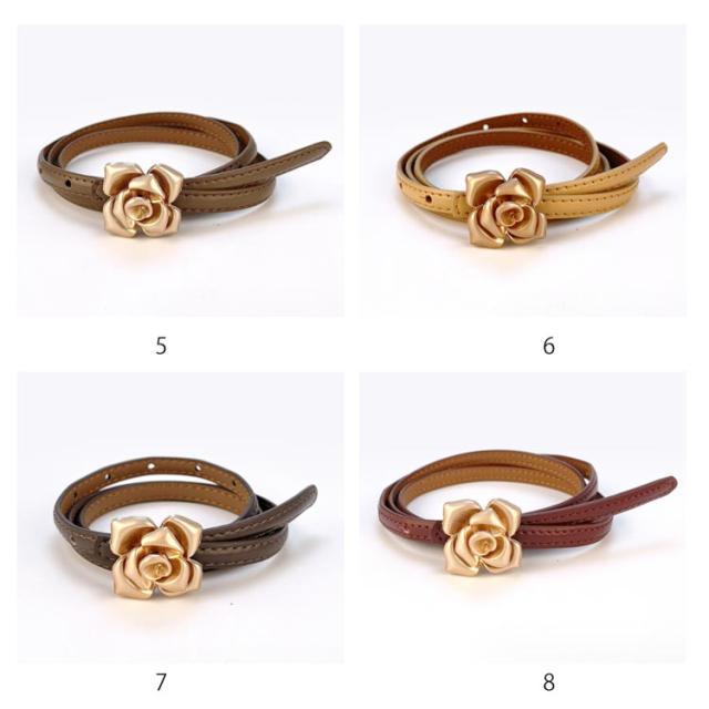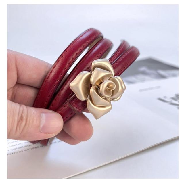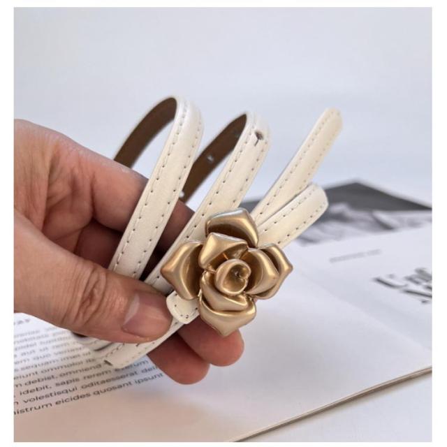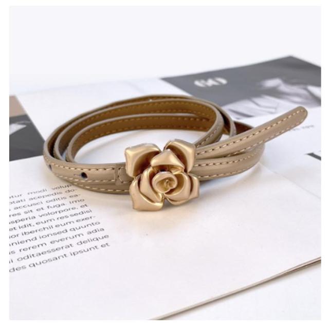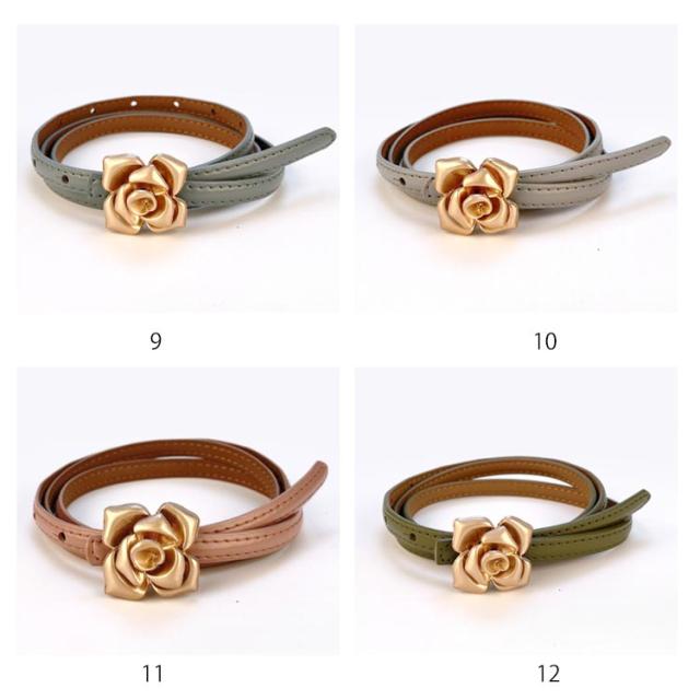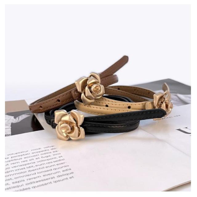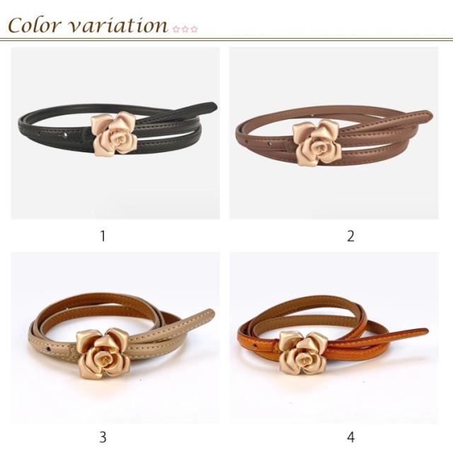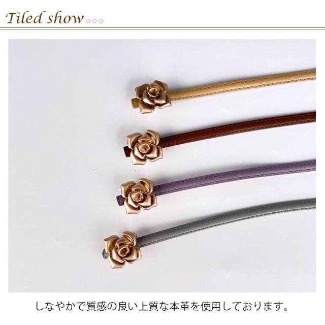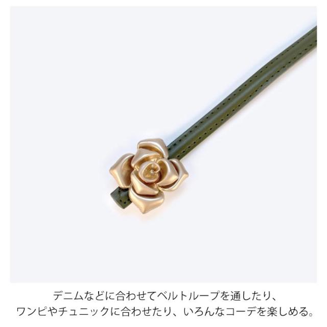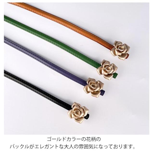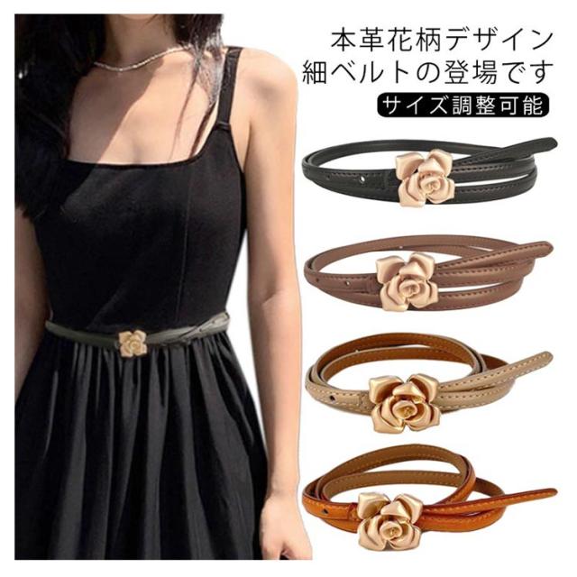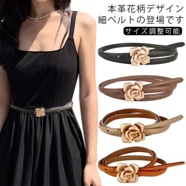 本革 ベルト レディース 細ベルト ゴールド バックル 花柄 フラワー ワンピース スカート用 ジーンズ ドレス 細 ベルト 牛革 レザー ビットベルト アジャスター サイズ調整可能 軽量 ウエストマーク カジュアル フォーマル オフィス エレガント きれいめ 上品 送料無料