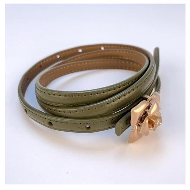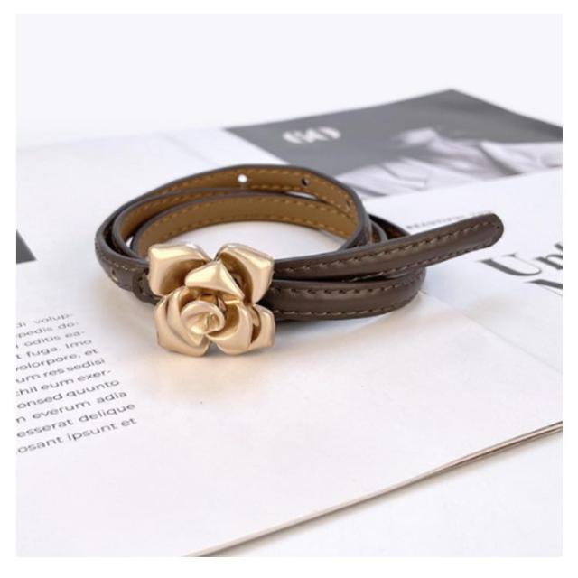 | 本革花柄デザイン細ベルトの登場です。 しなやかで質感の良い上質な本革を使用しております。 ゴールドカラーの花柄のバックルがエレガントな大人の雰囲気になっております。 デニムなどに合わせてベルトループを通したり、ワンピやチュニックに合わせたり、いろんなコーデを楽しめる。 | |