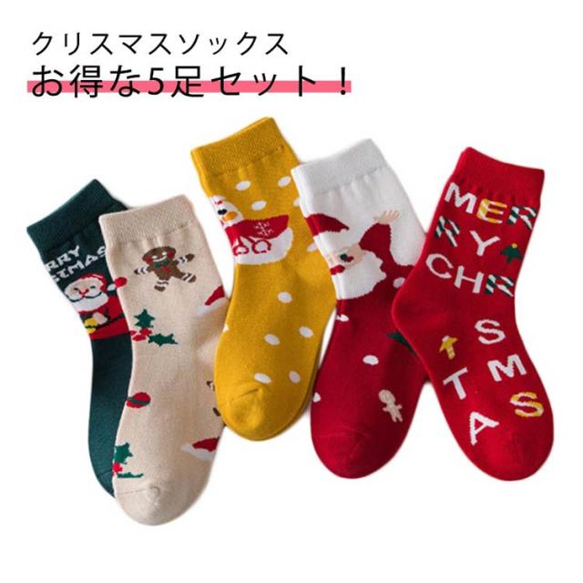 クリスマスソックス 子供 キッズ ソックス 5足セット 男の子 女の子 クリスマス靴下 綿 コットン クリスマス コスプレ サンタ柄 ツリー 雪だるま ソックス おしゃれ かわいい ジュニア ベビー 靴下 くつ下 プレゼント ギフト 送料無料