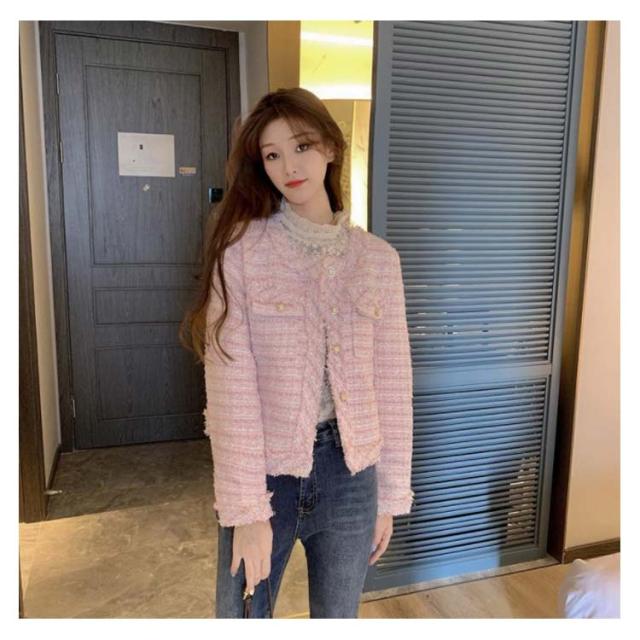 | 【ツイード調ジャケット】【S-2XL・2color】 高級感のあるツイード調ジャケットです。 フリンジを仕立てたノーカラー仕様で、華やかに仕上がっています。 すっきりとした着こなしに仕上げてくれる、上品なノーカラーデザインが魅力の一着。 アクセントも加わりブラウスとスラックス、ニットとデニムでカジュアルにもOK♪ さらっと羽織るだけで、こなれたニュアンスを出してくれます。 | |
