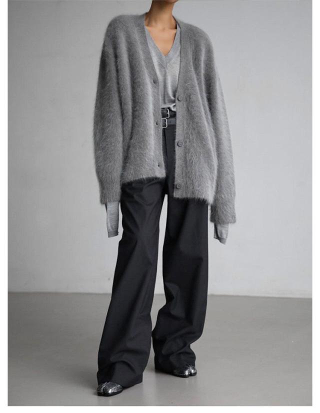 | 新作!カーディガン秋冬定番・シャギーカーディガン ふわふわで滑らかな肌触りのシャギー素材が魅力のVネックカーディガン 気持ちもコーデも心地よく、着るだけで季節感が高まる1着 ボリューム感がありながらVネックなので首回りはすっきり 一枚ですぐに今っぽコーデが完成する、お洒落見せ確実な一枚 季節を纏う、素材楽しむ1着 ふっくら柔らかシャギーニットカーデ | |