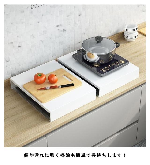 ガスコンロ コンロ上 カバー 作業台 作業スペース キッチン作業台 調理スペース 一時置き ステンレス キッチン 台所 収納 隙間収納 油はねガー 食材置き コンロガード キッチン収納 鍋置き 一人暮らし ホワイト ブラック