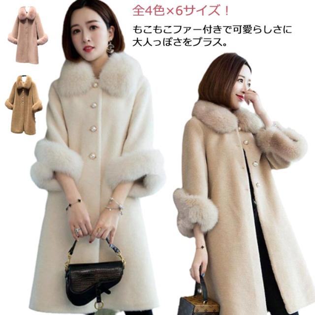 ボアコート ムートンコート レディース 冬 40代 ファーコート フェイクムートン ロングコート オーバーコート アウター 防寒 フェイクファー付き 40代 50代 30代 きれいめ アウター 秋冬