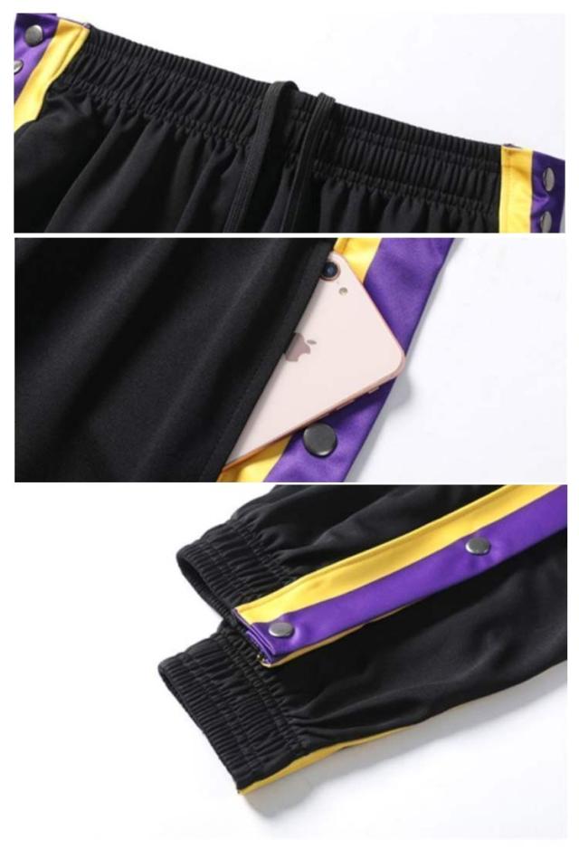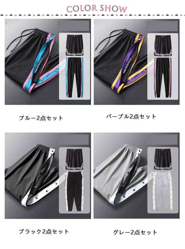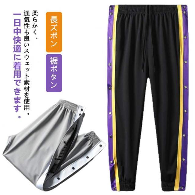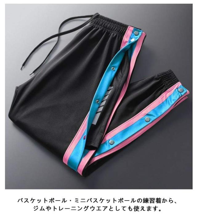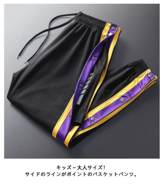 送料無料 2点セット!バスケットパンツ バスケパンツ スナップボタン バスケットボールパンツ キッズ ジュニア 大人 メンズ レディース バスパン 裾ボタン サイドボタン サイドライン 長ズボン ロングパンツ ジャージ 下 男の子 女の子 男性 女性